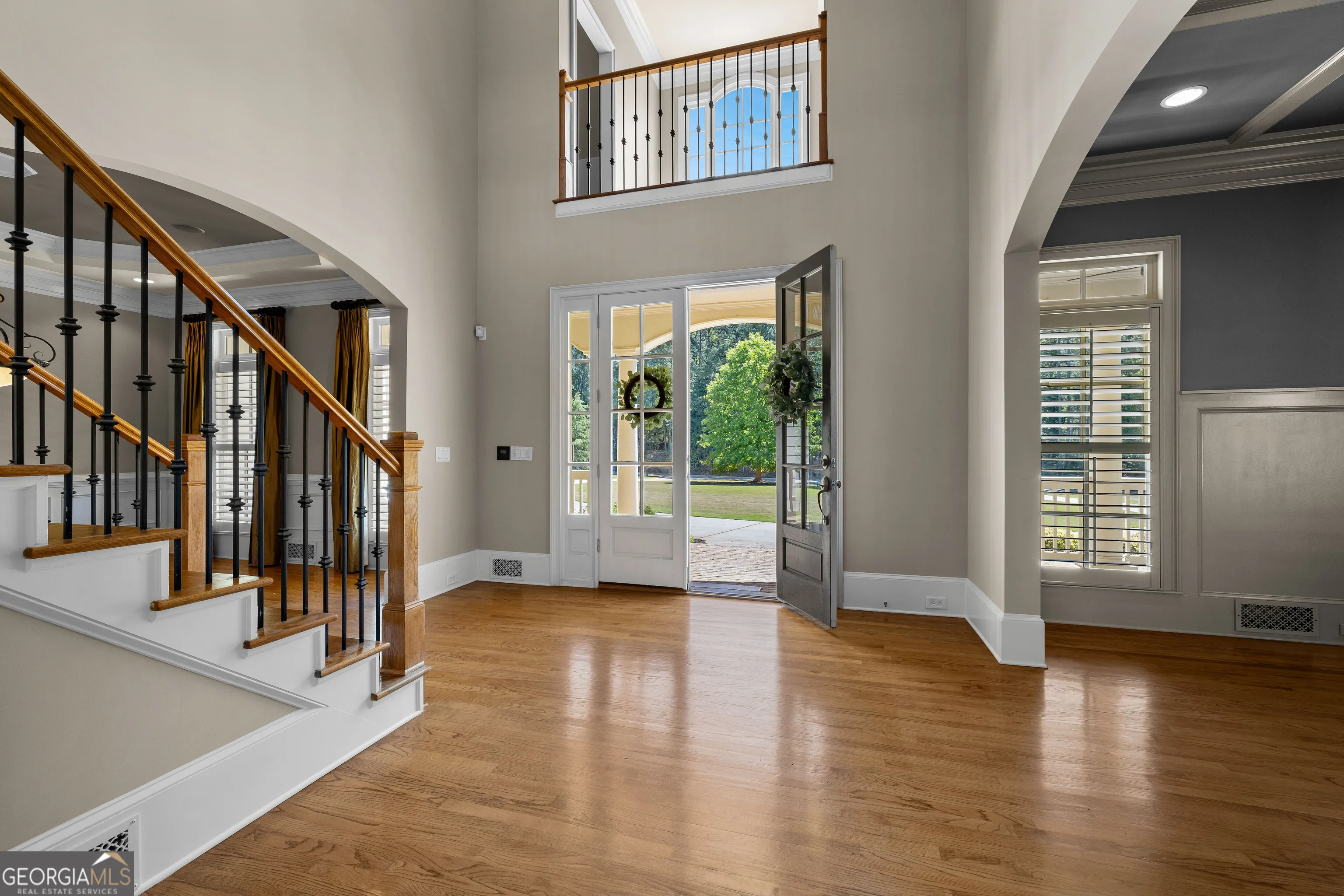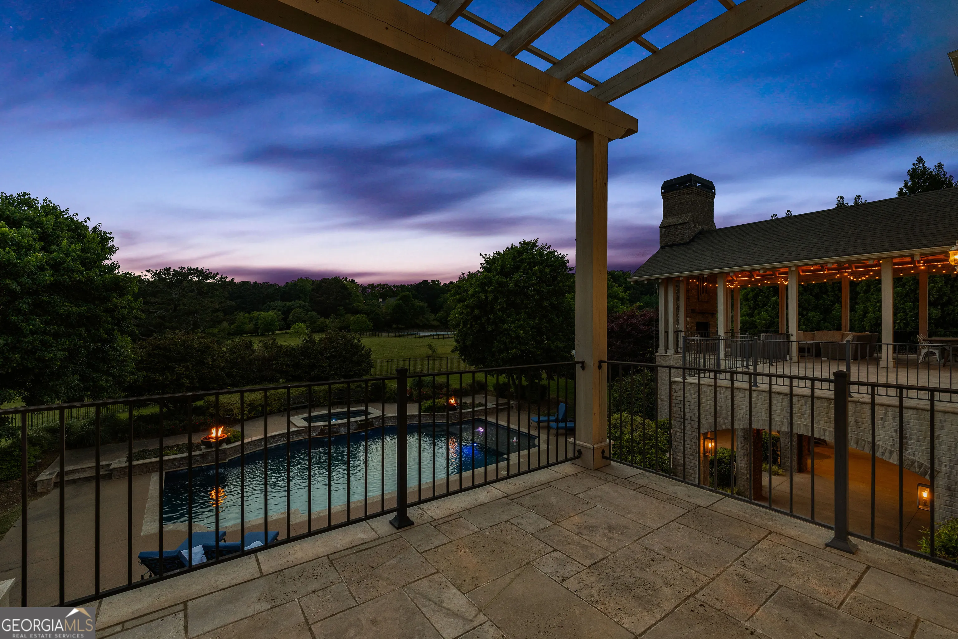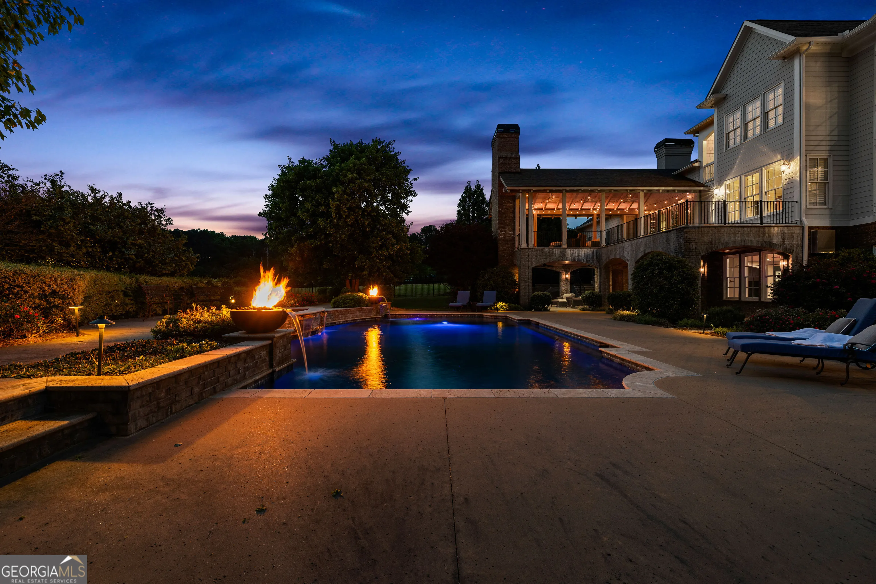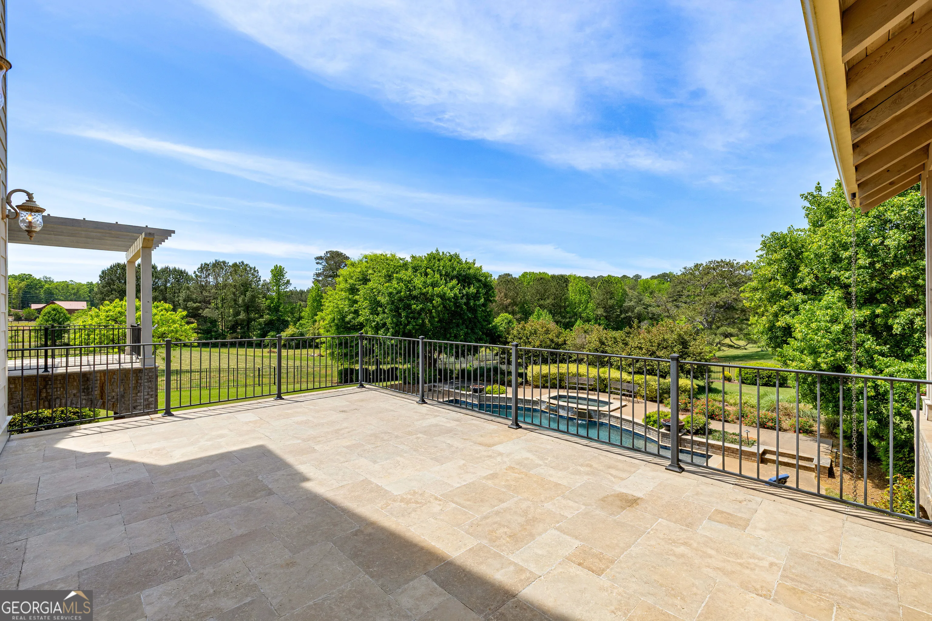Set on five acres, this amazing custom estate is designed for elevated everyday living and unforgettable entertaining! This property checks every box with a gunite pebbletech pool & spa, three floors of living space includes: 7 bedrooms, 5 full baths, 2 half baths, 6 fireplaces, 3 laundry rooms, library, keeping room, theater room, billiard room, full bar and lounge! The perfect blend of luxury and function both inside and out. The main level features a two-story double door front entry to the grand staircase, hardwood floors, coffered ceilings, and a beautiful, well-appointed kitchen anchored by an oversized granite island with seating and built-in wine rack. Multiple gathering spaces including a keeping room offers functionality and sophistication with custom bookcases and a stone fireplace, and the main living room boasts floor-to-soaring ceiling windows with its own fireplace. The main level is complete with a library or dedicated office space, formal dining room with butler’s pantry, and tiled mudroom with open shelving pantry, standalone deep freezer and standalone refrigerator, custom drop zone, and direct access to all 4 car garages. The bedroom on main offers flexibility with a full bath, custom closet, and a private balcony. Beautiful hardwood flooring continues upstairs to the primary suite – a true retreat with a spacious sitting area, fireplace, private balcony overlooking the pool, whirlpool bath, separate tiled shower, dual vanities, and custom his & her closets with granite dresser and peninsula. Three generously sized secondary bedrooms, laundry room with storage, private loft area, and a rear staircase enhance comfort and flow to complete the upstairs. The finished terrace level is designed to impress, featuring a full theater room, lounge, billiards area, half bath, and a phenomenal custom granite bar complete with sink, dishwasher, dual mini refrigerators, ice machine, and a three-tap kegerator. Two terrace level bedrooms with a full bath, have direct pool access via french doors. Enjoy your private luxury resort with a backyard thoughtfully designed for year-round enjoyment featuring a two-story 20′ porch with a wood-burning fireplace patio and a separate covered and beamed deck with gas fireplace offering deep shade and no shortage of space to entertain. Layered outdoor experiences from the massive gunite pool with tanning ledge, hot tub, and waterfall features to the kitchen herb garden, charming brick archways and sitting areas, meticulous landscaping, and serene pastoral views from every angle. A generous 4 car garage with a oversized storage area provides an accommodating space for everyone’s vehicle and tools. This expansive 5 acre lot has no HOA and is a rare offering of privacy, scale, and lifestyle that stands alone!