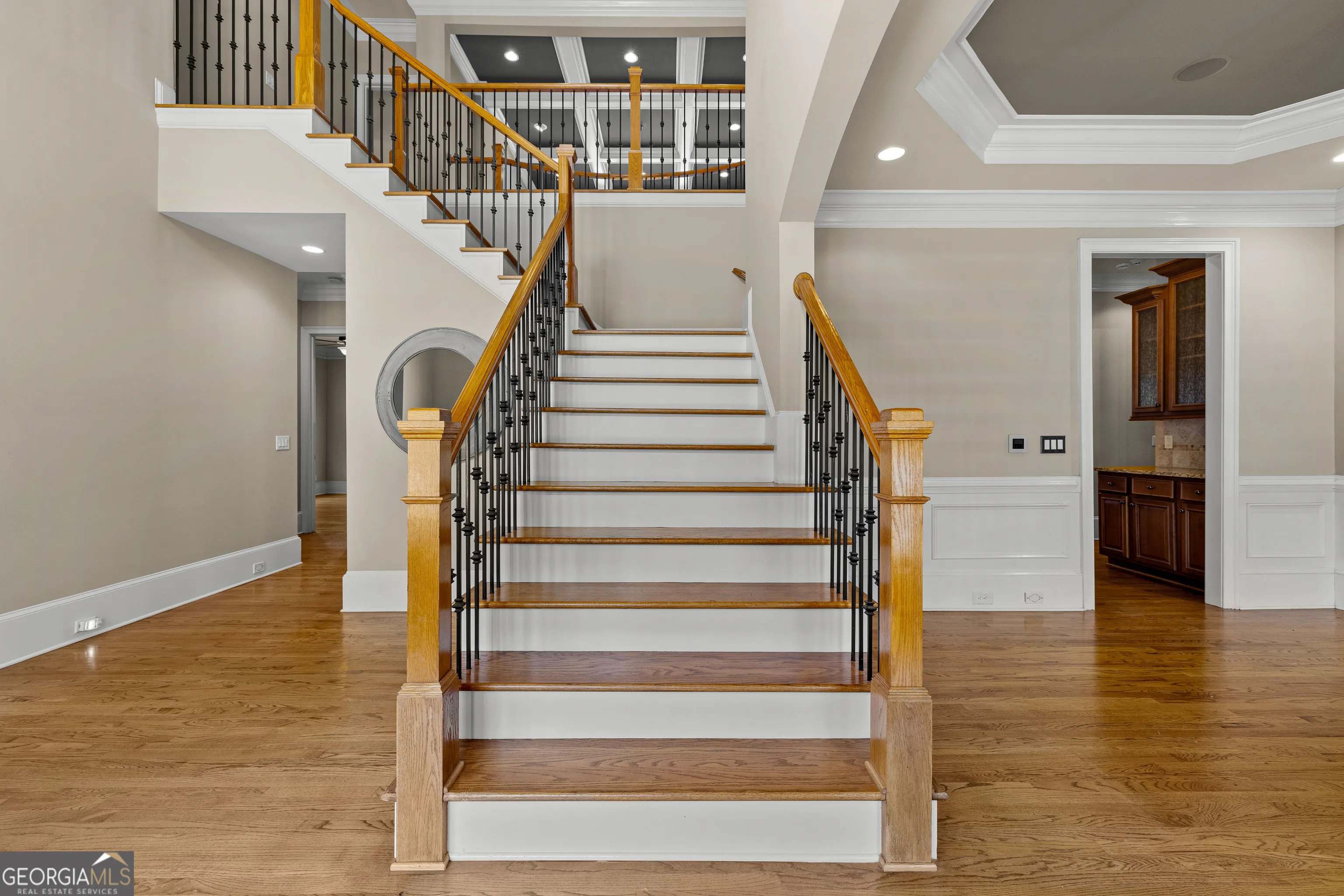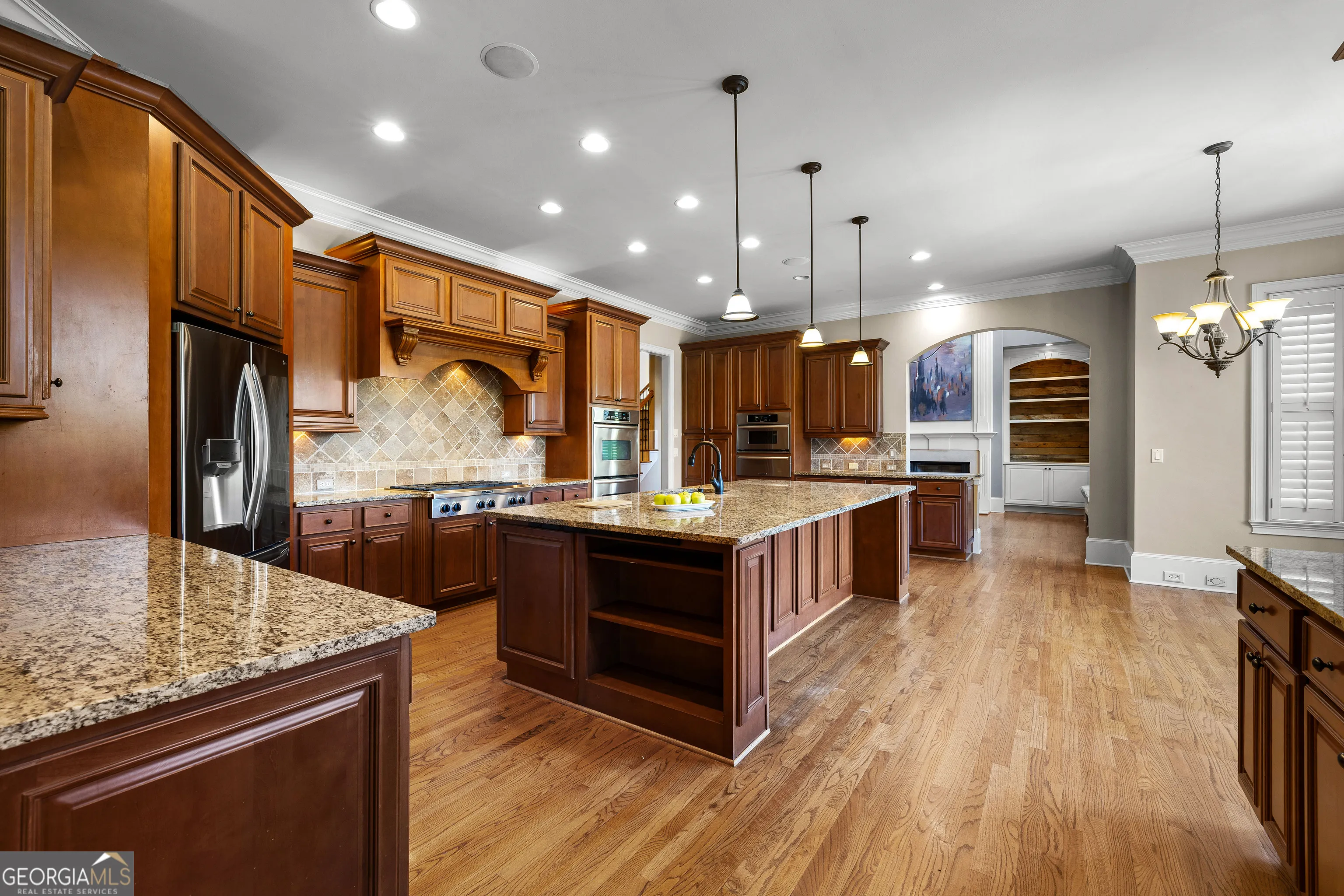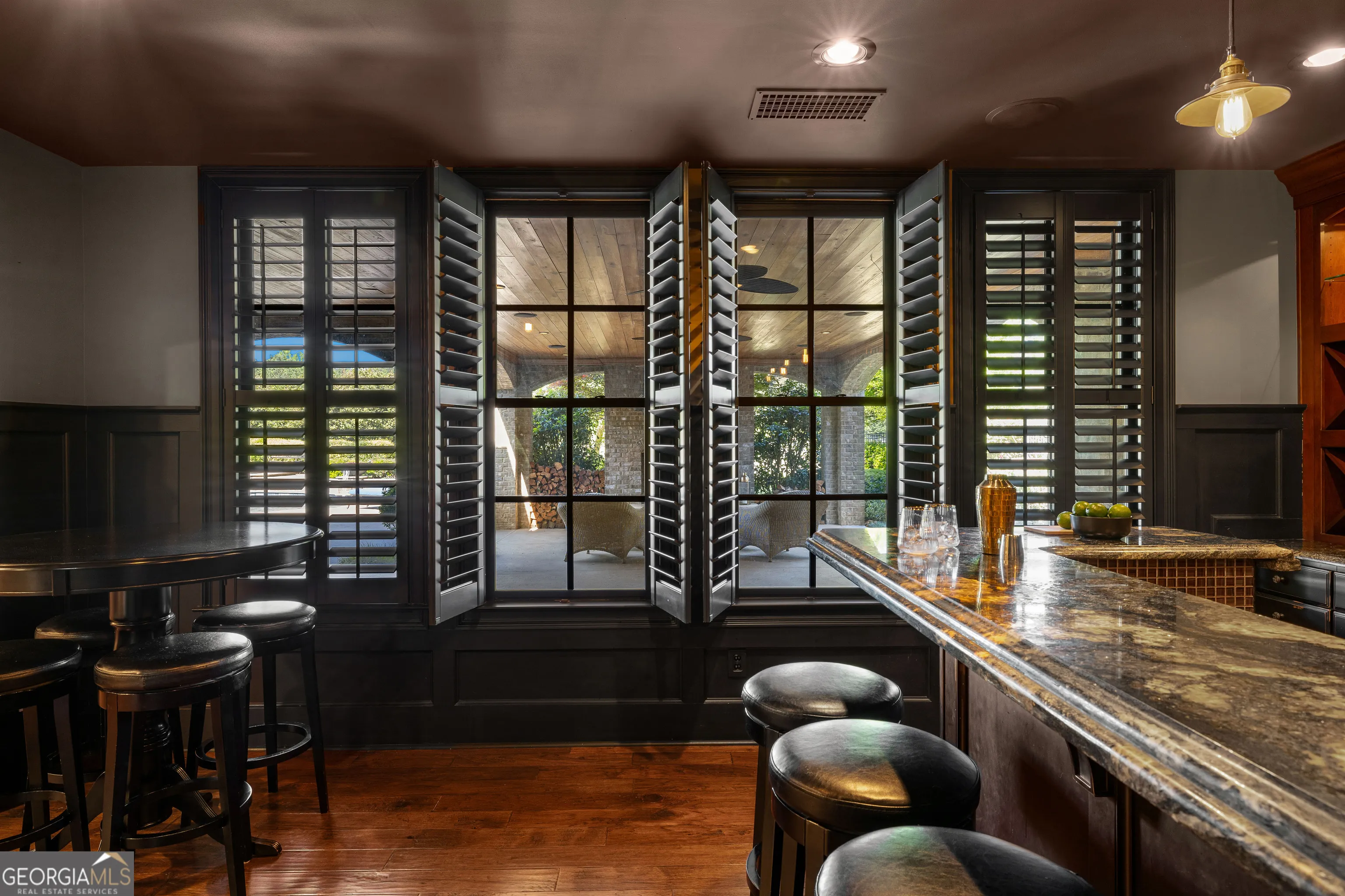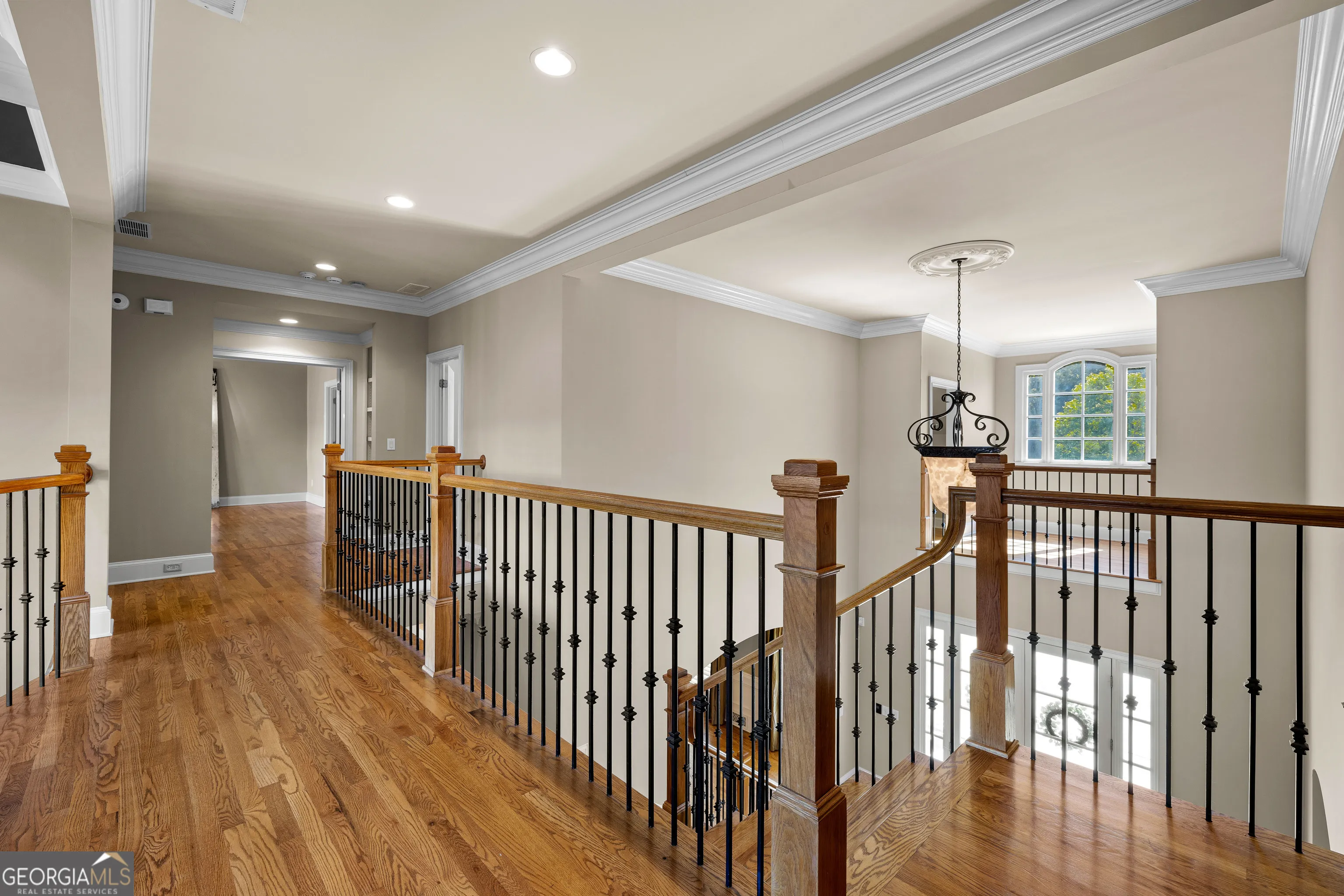 Set on five acres, this amazing custom estate is designed for elevated everyday living and unforgettable entertaining! This property checks every box with a gunite pebbletech pool & spa, three floors of living space includes: 7 bedrooms, 5 full baths, 2 half baths, 6 fireplaces, 3 laundry rooms, library, keeping room, theater room, billiard room, full bar and lounge! The perfect blend of luxury and function both inside and out. The main level features a two-story double door front entry to the grand staircase, hardwood floors, coffered ceilings, and a beautiful, well-appointed kitchen anchored by an oversized granite island with seating and built-in wine rack. Multiple gathering spaces including a keeping room offers functionality and sophistication with custom bookcases and a stone fireplace, and the main living room boasts floor-to-soaring ceiling windows with its own fireplace. The main level is complete with a library or dedicated office space, formal dining room with butler’s pantry, and tiled mudroom with open shelving pantry, standalone deep freezer and standalone refrigerator, custom drop zone, and direct access to all 4 car garages. The bedroom on main offers flexibility with a full bath, custom closet, and a private balcony. Beautiful hardwood flooring continues upstairs to the primary suite – a true retreat with a spacious sitting area, fireplace, private balcony overlooking the pool, whirlpool bath, separate tiled shower, dual vanities, and custom his & her closets with granite dresser and peninsula. Three generously sized secondary bedrooms, laundry room with storage, private loft area, and a rear staircase enhance comfort and flow to complete the upstairs. The finished terrace level is designed to impress, featuring a full theater room, lounge, billiards area, half bath, and a phenomenal custom granite bar complete with sink, dishwasher, dual mini refrigerators, ice machine, and a three-tap kegerator. Two terrace level bedrooms with a full bath, have direct pool access via french doors. Enjoy your private luxury resort with a backyard thoughtfully designed for year-round enjoyment featuring a two-story 20′ porch with a wood-burning fireplace patio and a separate covered and beamed deck with gas fireplace offering deep shade and no shortage of space to entertain. Layered outdoor experiences from the massive gunite pool with tanning ledge, hot tub, and waterfall features to the kitchen herb garden, charming brick archways and sitting areas, meticulous landscaping, and serene pastoral views from every angle. A generous 4 car garage with a oversized storage area provides an accommodating space for everyone’s vehicle and tools. This expansive 5 acre lot has no HOA and is a rare offering of privacy, scale, and lifestyle that stands alone!