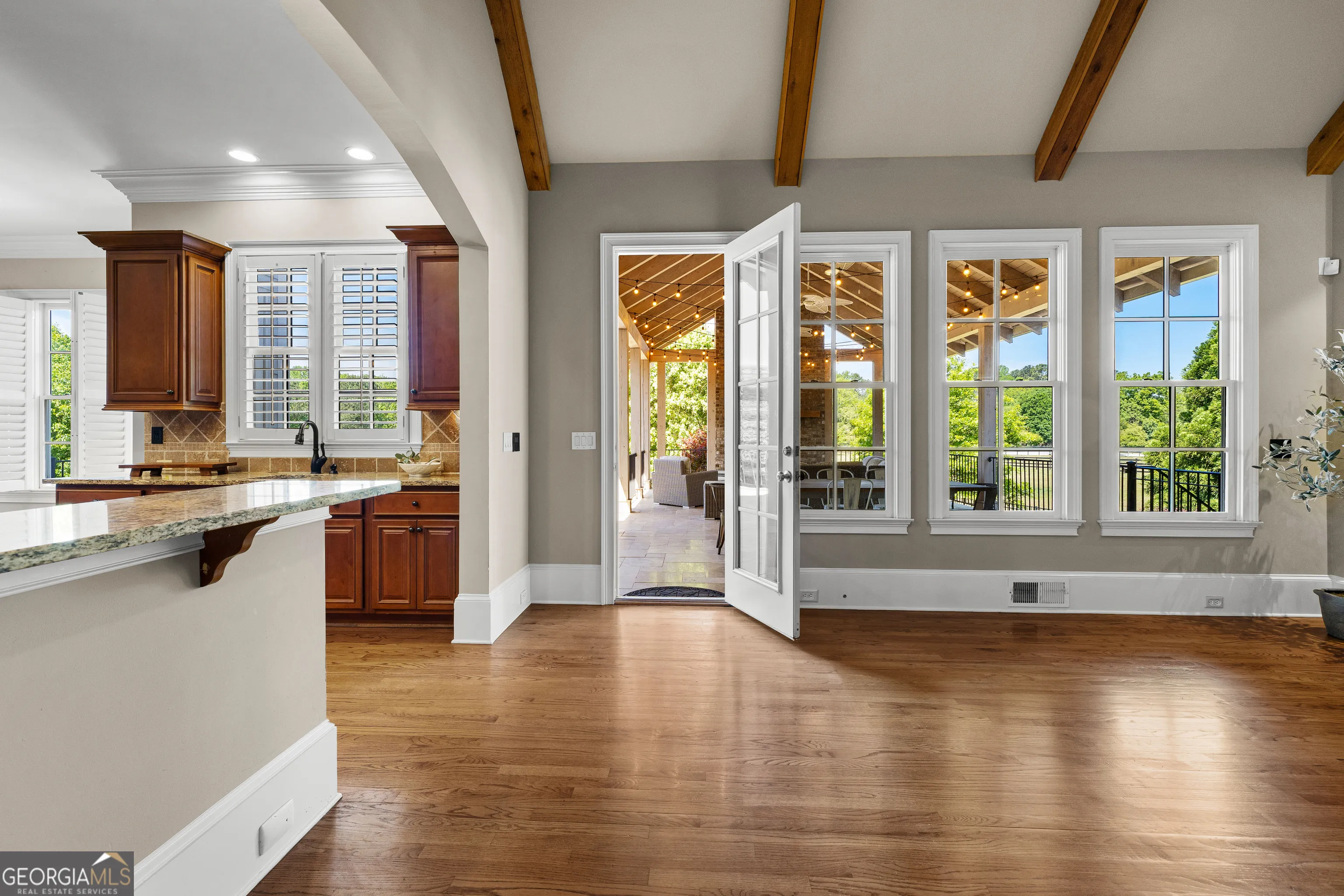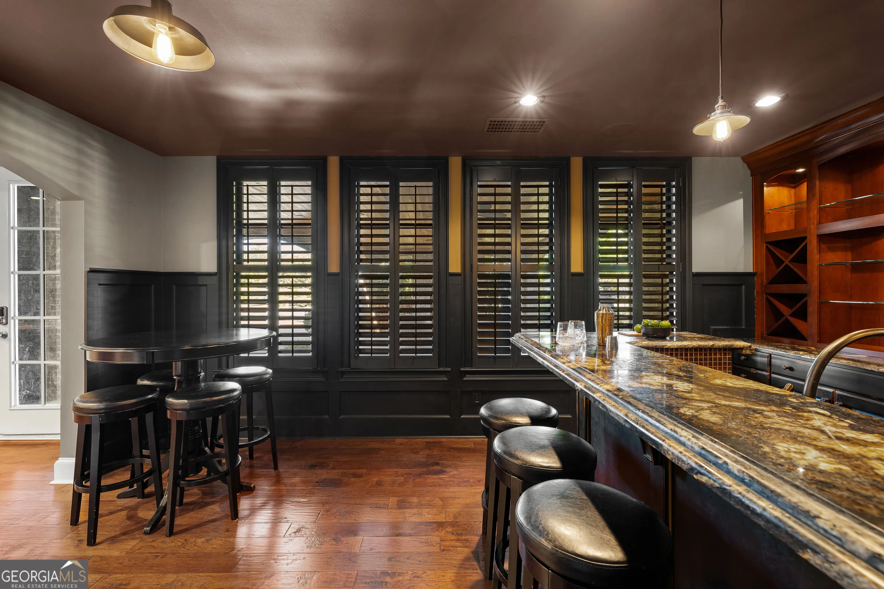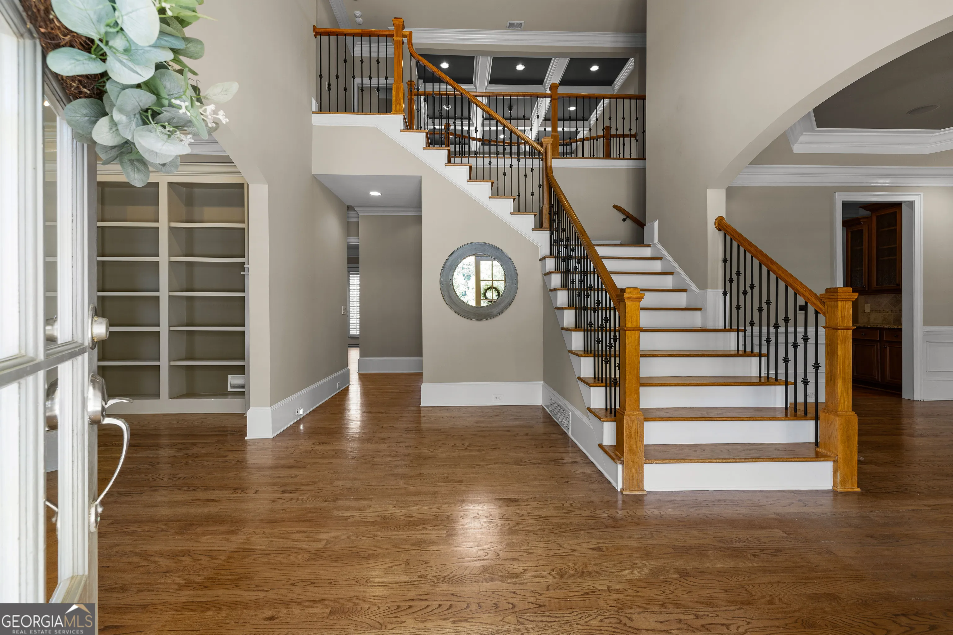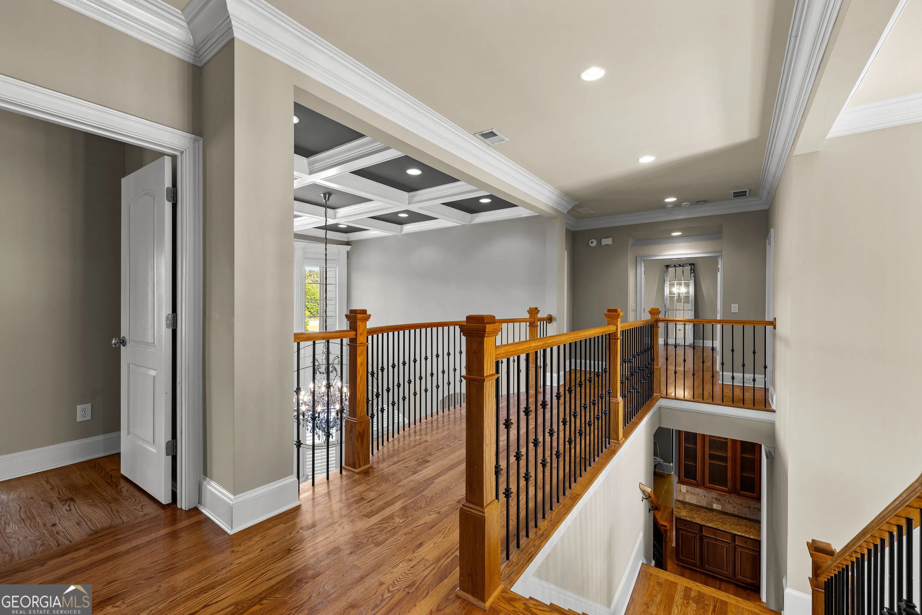 Set on five acres, this amazing custom estate is designed for elevated everyday living and unforgettable entertaining! This property checks every box with a gunite pebbletech pool & spa, three floors of living space includes: 7 bedrooms, 5 full baths, 2 half baths, 6 fireplaces, 3 laundry rooms, library, keeping room, theater room, billiard room, full bar and lounge! The perfect blend of luxury and function both inside and out. The main level features a two-story double door front entry to the grand staircase, hardwood floors, coffered ceilings, and a beautiful, well-appointed kitchen anchored by an oversized granite island with seating and built-in wine rack. Multiple gathering spaces including a keeping room offers functionality and sophistication with custom bookcases and a stone fireplace, and the main living room boasts floor-to-soaring ceiling windows with its own fireplace. The main level is complete with a library or dedicated office space, formal dining room with butler’s pantry, and tiled mudroom with open shelving pantry, standalone deep freezer and standalone refrigerator, custom drop zone, and direct access to all 4 car garages. The bedroom on main offers flexibility with a full bath, custom closet, and a private balcony. Beautiful hardwood flooring continues upstairs to the primary suite – a true retreat with a spacious sitting area, fireplace, private balcony overlooking the pool, whirlpool bath, separate tiled shower, dual vanities, and custom his & her closets with granite dresser and peninsula. Three generously sized secondary bedrooms, laundry room with storage, private loft area, and a rear staircase enhance comfort and flow to complete the upstairs. The finished terrace level is designed to impress, featuring a full theater room, lounge, billiards area, half bath, and a phenomenal custom granite bar complete with sink, dishwasher, dual mini refrigerators, ice machine, and a three-tap kegerator. Two terrace level bedrooms with a full bath, have direct pool access via french doors. Enjoy your private luxury resort with a backyard thoughtfully designed for year-round enjoyment featuring a two-story 20′ porch with a wood-burning fireplace patio and a separate covered and beamed deck with gas fireplace offering deep shade and no shortage of space to entertain. Layered outdoor experiences from the massive gunite pool with tanning ledge, hot tub, and waterfall features to the kitchen herb garden, charming brick archways and sitting areas, meticulous landscaping, and serene pastoral views from every angle. A generous 4 car garage with a oversized storage area provides an accommodating space for everyone’s vehicle and tools. This expansive 5 acre lot has no HOA and is a rare offering of privacy, scale, and lifestyle that stands alone!