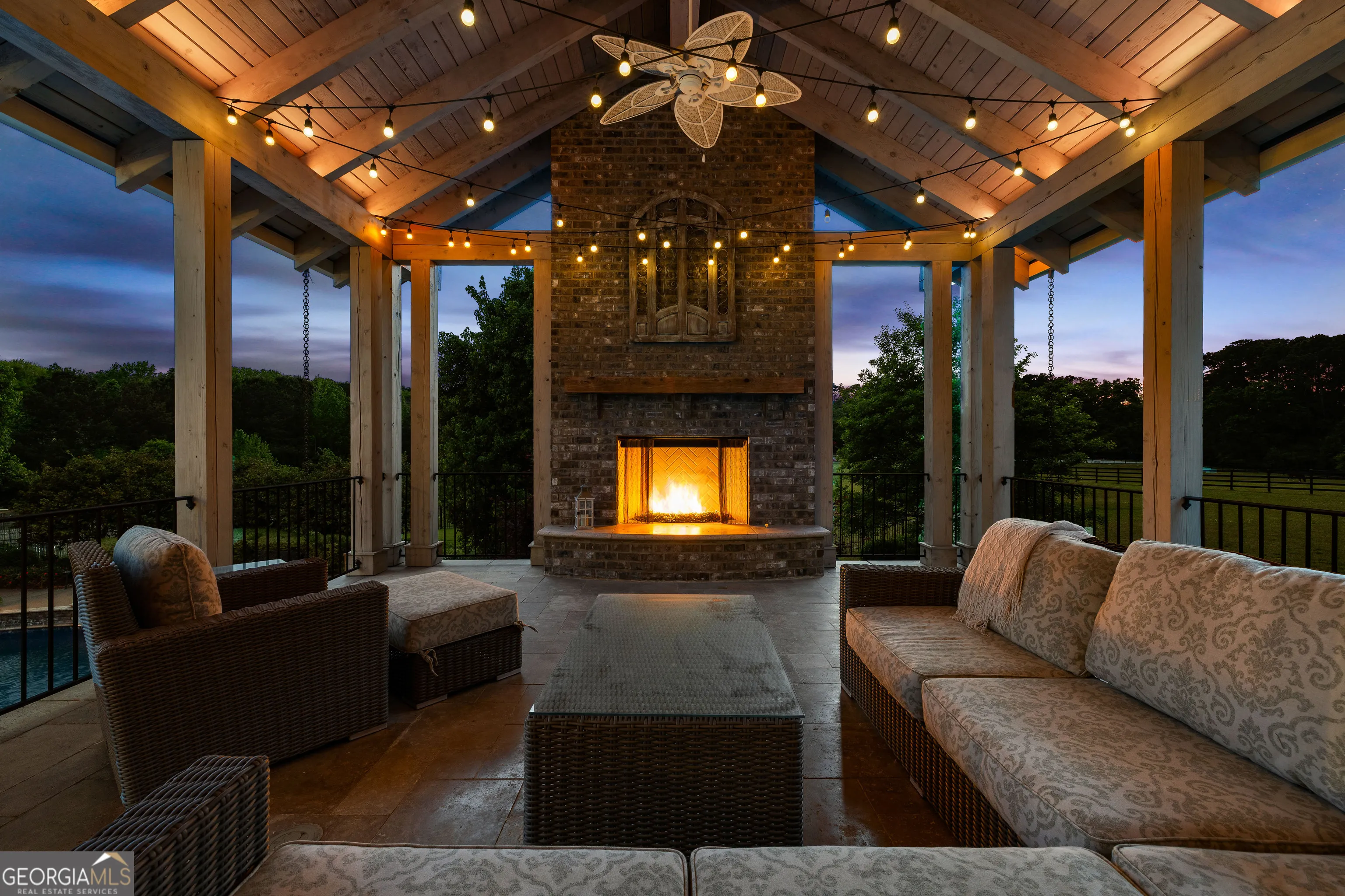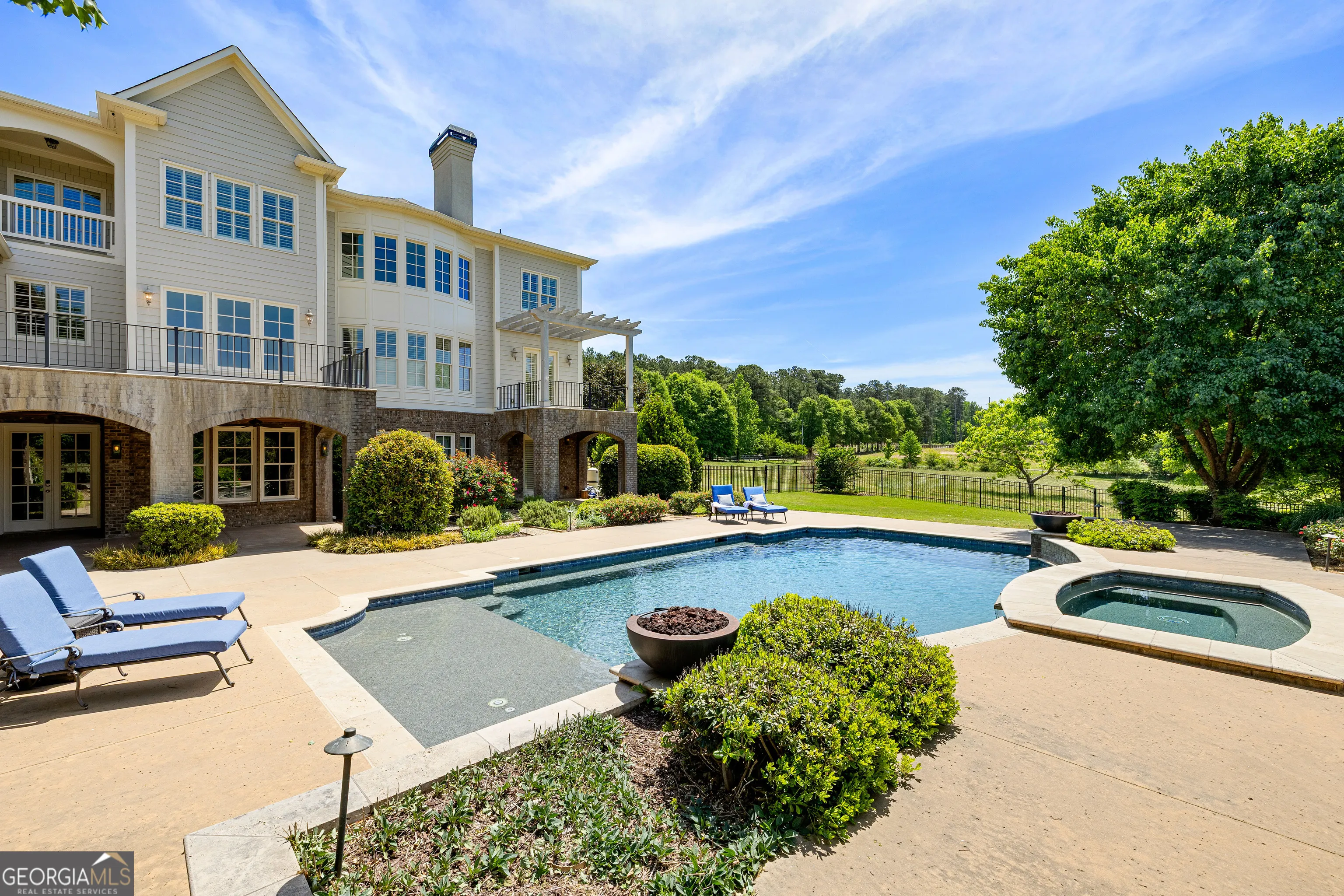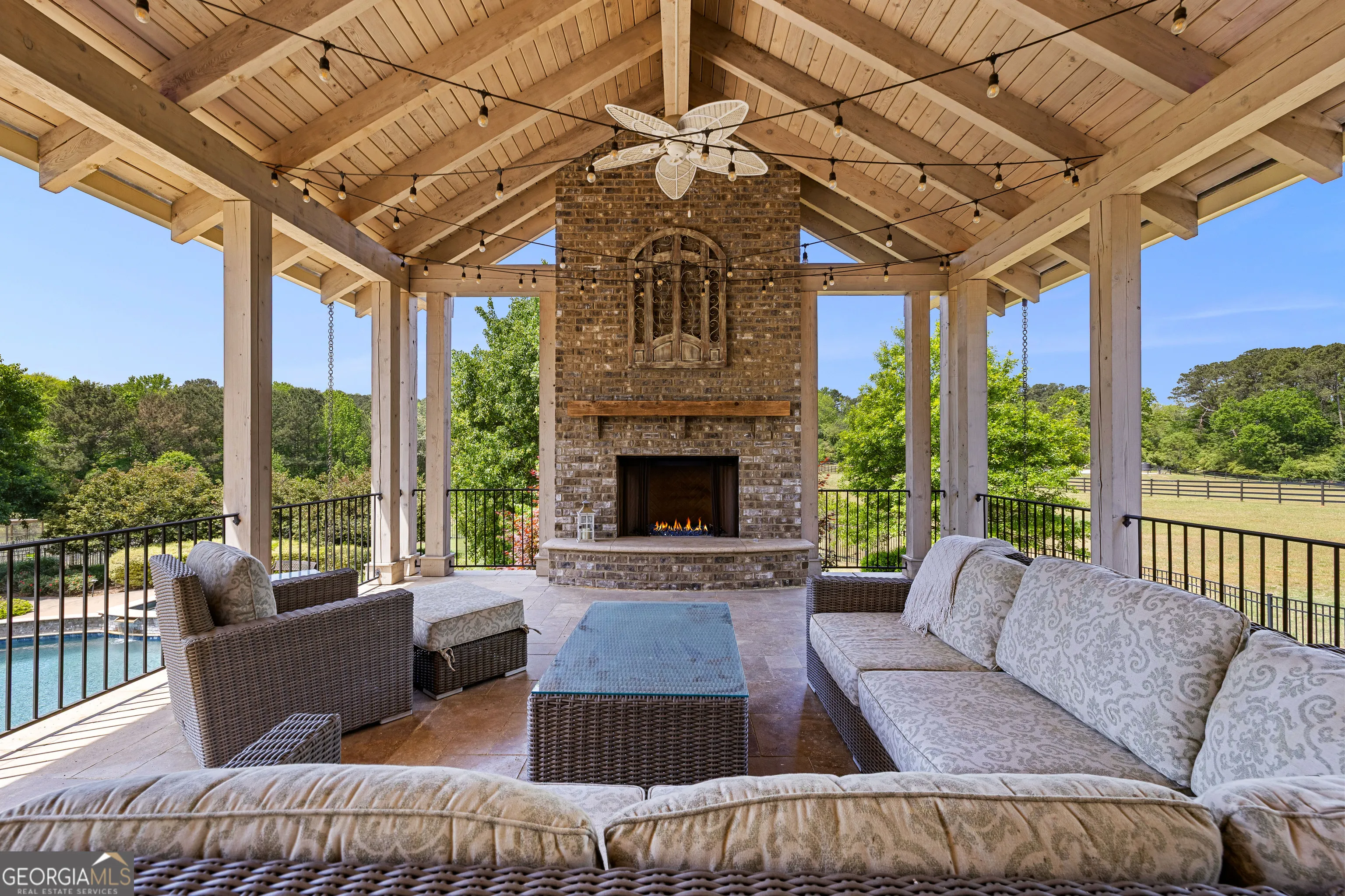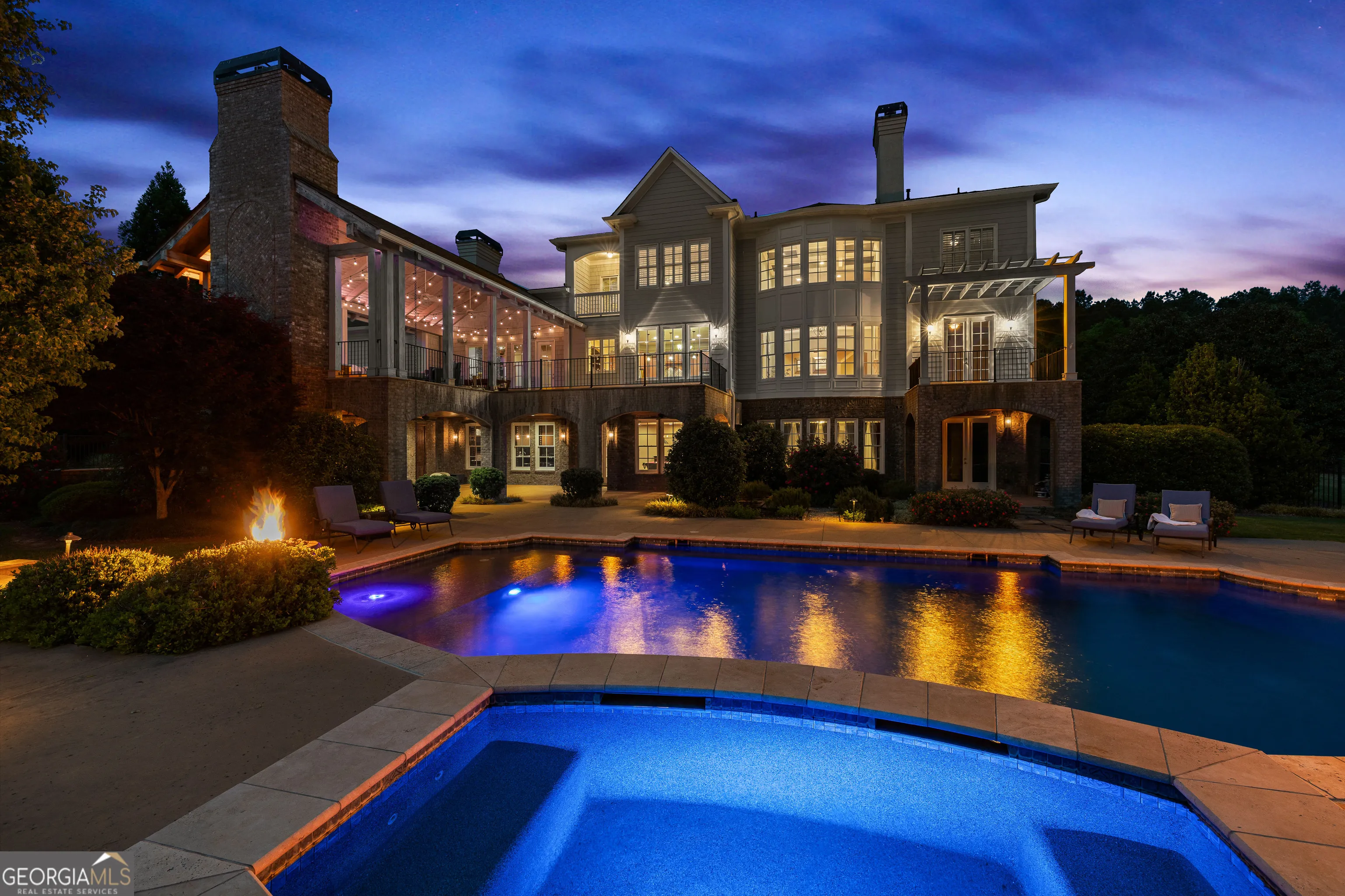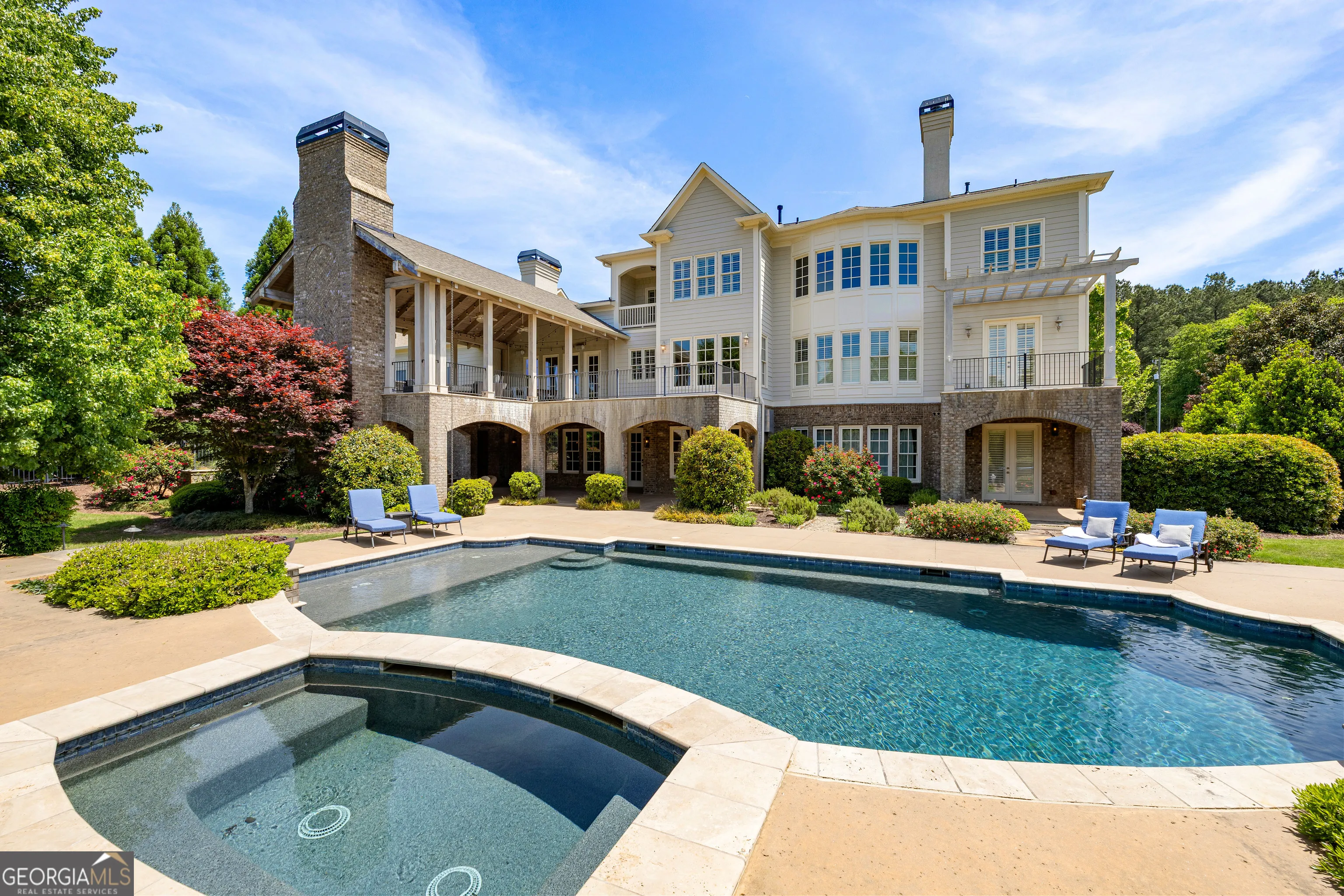 Set on five acres, this amazing custom estate is designed for elevated everyday living and unforgettable entertaining! This property checks every box with a gunite pebbletech pool & spa, three floors of living space includes: 7 bedrooms, 5 full baths, 2 half baths, 6 fireplaces, 3 laundry rooms, library, keeping room, theater room, billiard room, full bar and lounge! The perfect blend of luxury and function both inside and out. The main level features a two-story double door front entry to the grand staircase, hardwood floors, coffered ceilings, and a beautiful, well-appointed kitchen anchored by an oversized granite island with seating and built-in wine rack. Multiple gathering spaces including a keeping room offers functionality and sophistication with custom bookcases and a stone fireplace, and the main living room boasts floor-to-soaring ceiling windows with its own fireplace. The main level is complete with a library or dedicated office space, formal dining room with butler’s pantry, and tiled mudroom with open shelving pantry, standalone deep freezer and standalone refrigerator, custom drop zone, and direct access to all 4 car garages. The bedroom on main offers flexibility with a full bath, custom closet, and a private balcony. Beautiful hardwood flooring continues upstairs to the primary suite – a true retreat with a spacious sitting area, fireplace, private balcony overlooking the pool, whirlpool bath, separate tiled shower, dual vanities, and custom his & her closets with granite dresser and peninsula. Three generously sized secondary bedrooms, laundry room with storage, private loft area, and a rear staircase enhance comfort and flow to complete the upstairs. The finished terrace level is designed to impress, featuring a full theater room, lounge, billiards area, half bath, and a phenomenal custom granite bar complete with sink, dishwasher, dual mini refrigerators, ice machine, and a three-tap kegerator. Two terrace level bedrooms with a full bath, have direct pool access via french doors. Enjoy your private luxury resort with a backyard thoughtfully designed for year-round enjoyment featuring a two-story 20′ porch with a wood-burning fireplace patio and a separate covered and beamed deck with gas fireplace offering deep shade and no shortage of space to entertain. Layered outdoor experiences from the massive gunite pool with tanning ledge, hot tub, and waterfall features to the kitchen herb garden, charming brick archways and sitting areas, meticulous landscaping, and serene pastoral views from every angle. A generous 4 car garage with a oversized storage area provides an accommodating space for everyone’s vehicle and tools. This expansive 5 acre lot has no HOA and is a rare offering of privacy, scale, and lifestyle that stands alone!