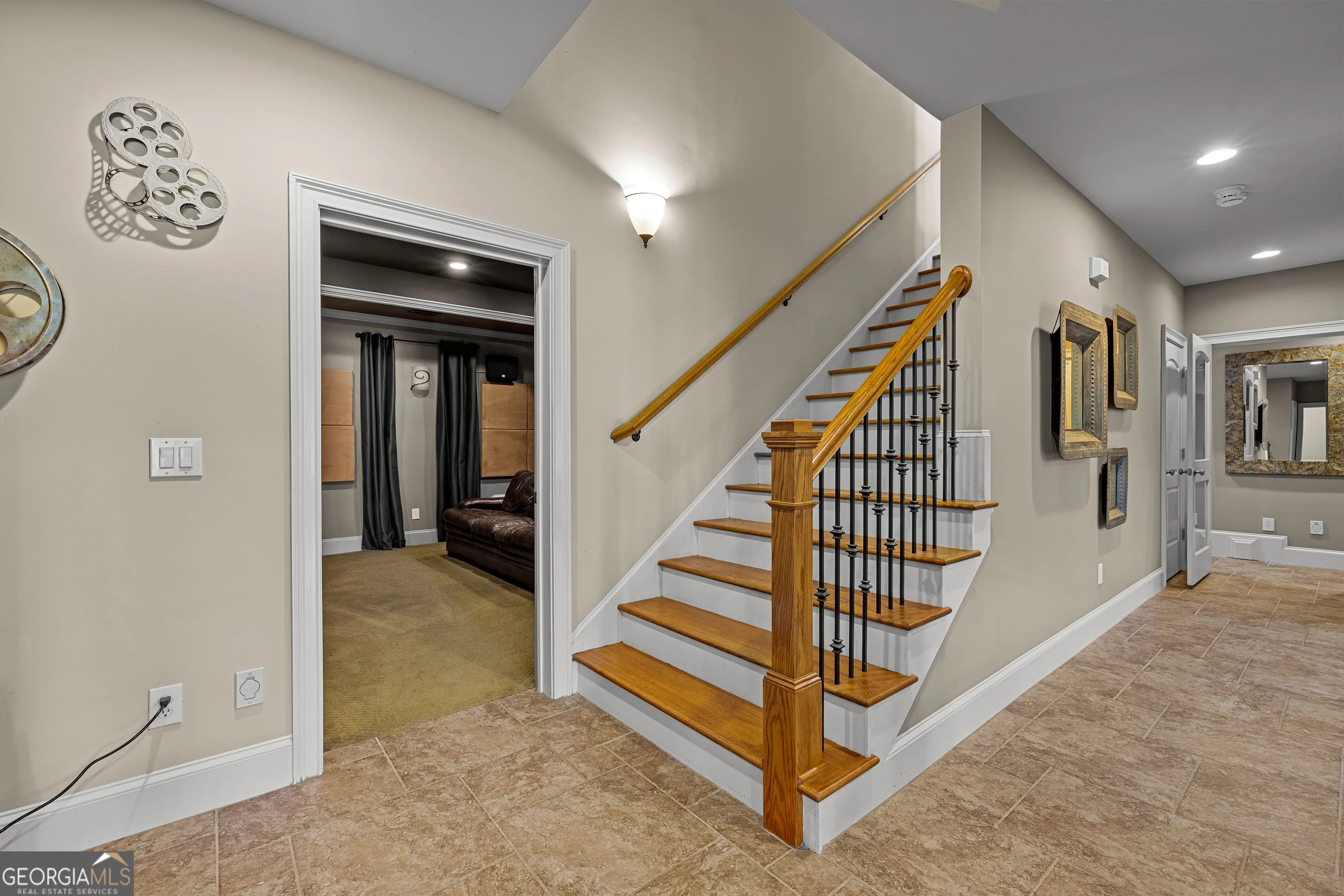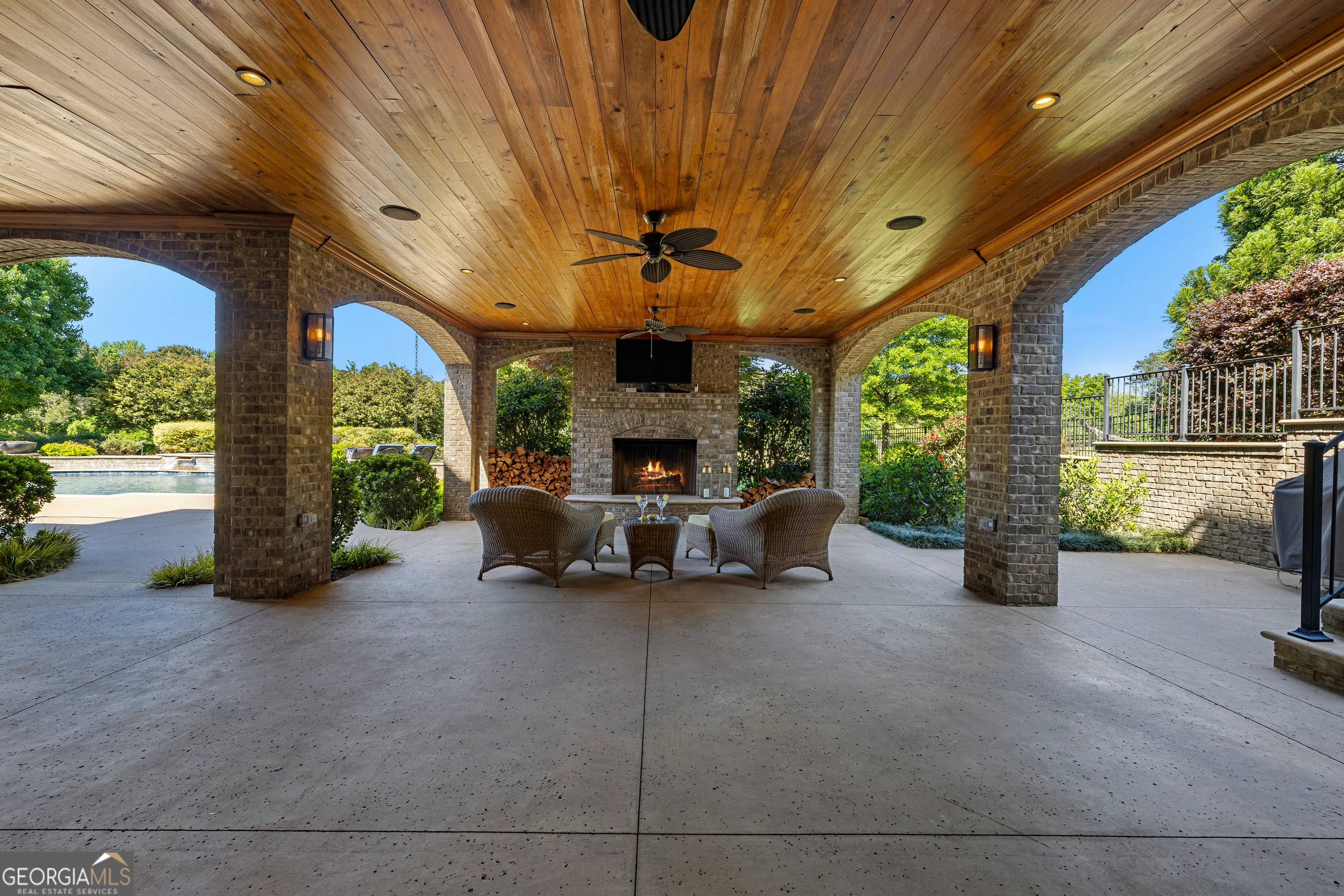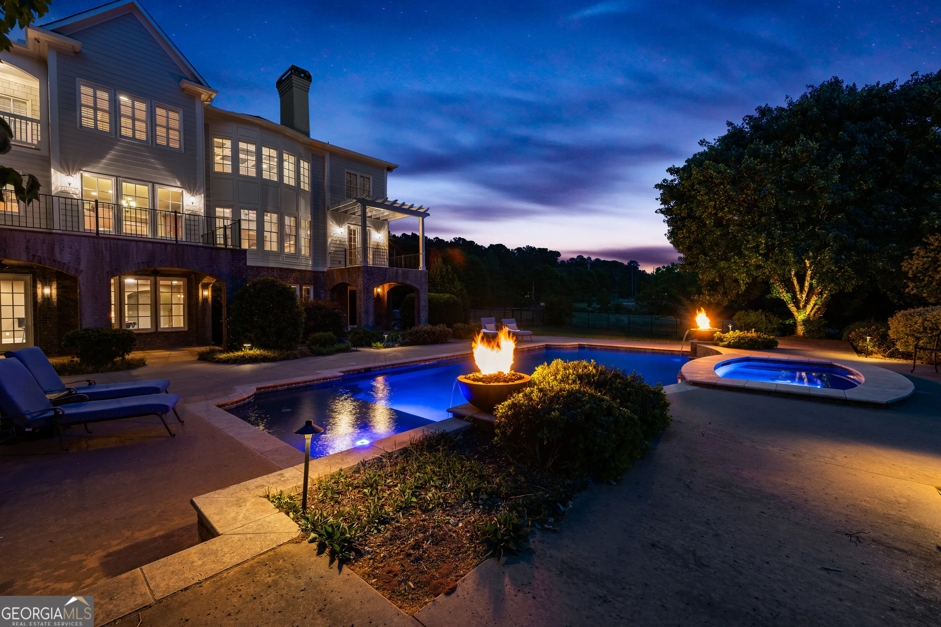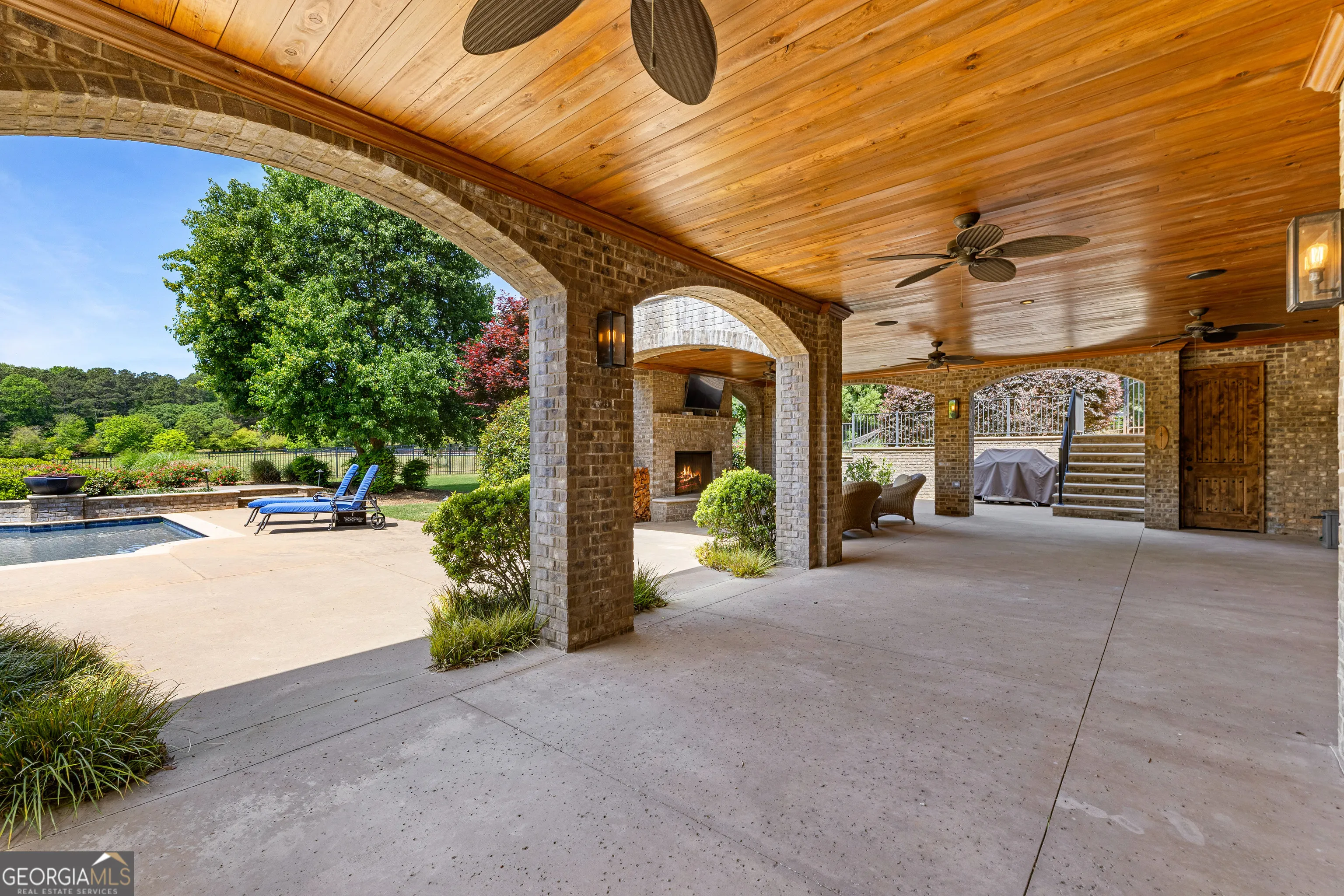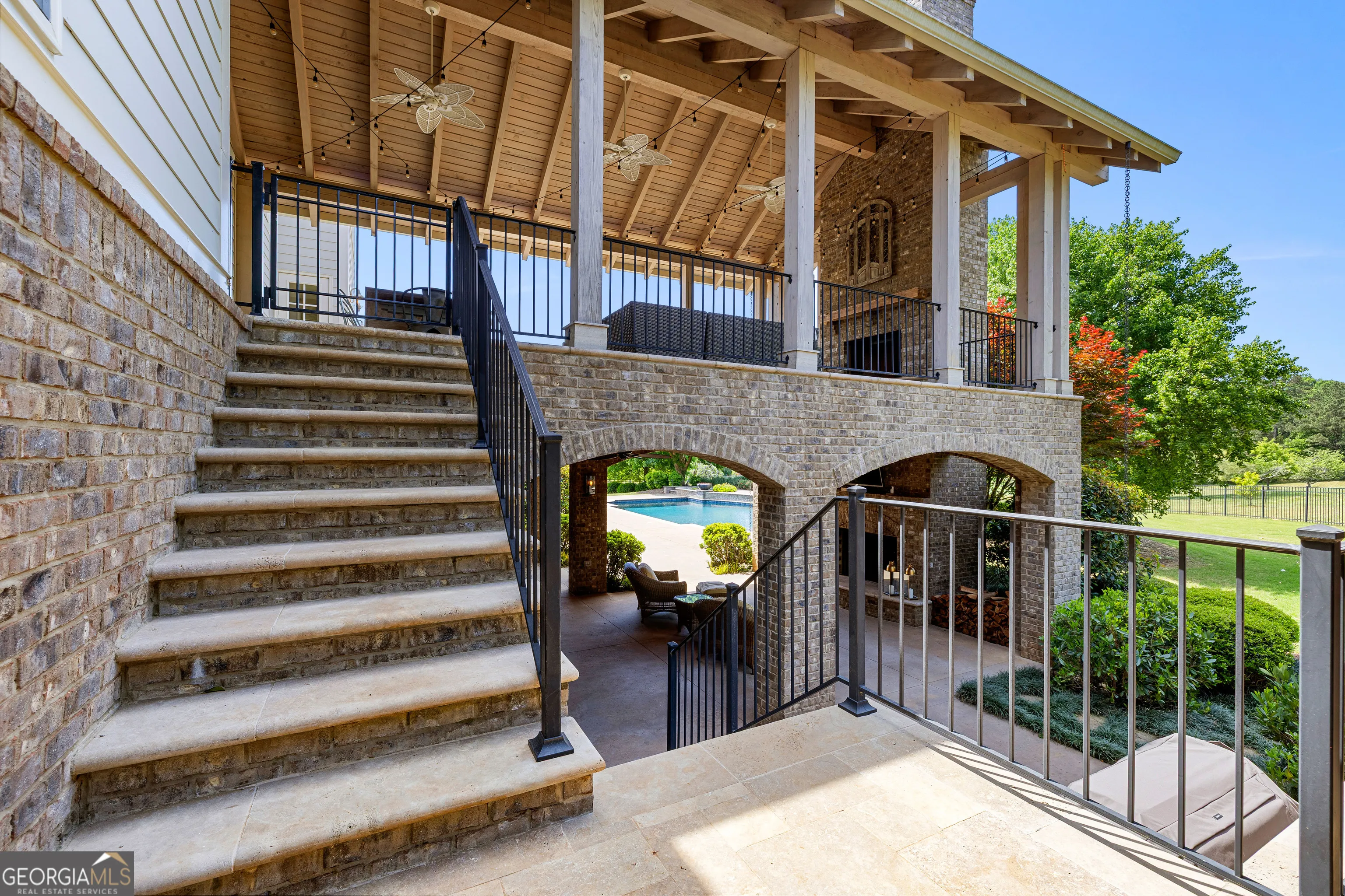 Set on five acres, this amazing custom estate is designed for elevated everyday living and unforgettable entertaining! This property checks every box with a gunite pebbletech pool & spa, three floors of living space includes: 7 bedrooms, 5 full baths, 2 half baths, 6 fireplaces, 3 laundry rooms, library, keeping room, theater room, billiard room, full bar and lounge! The perfect blend of luxury and function both inside and out. The main level features a two-story double door front entry to the grand staircase, hardwood floors, coffered ceilings, and a beautiful, well-appointed kitchen anchored by an oversized granite island with seating and built-in wine rack. Multiple gathering spaces including a keeping room offers functionality and sophistication with custom bookcases and a stone fireplace, and the main living room boasts floor-to-soaring ceiling windows with its own fireplace. The main level is complete with a library or dedicated office space, formal dining room with butler’s pantry, and tiled mudroom with open shelving pantry, standalone deep freezer and standalone refrigerator, custom drop zone, and direct access to all 4 car garages. The bedroom on main offers flexibility with a full bath, custom closet, and a private balcony. Beautiful hardwood flooring continues upstairs to the primary suite – a true retreat with a spacious sitting area, fireplace, private balcony overlooking the pool, whirlpool bath, separate tiled shower, dual vanities, and custom his & her closets with granite dresser and peninsula. Three generously sized secondary bedrooms, laundry room with storage, private loft area, and a rear staircase enhance comfort and flow to complete the upstairs. The finished terrace level is designed to impress, featuring a full theater room, lounge, billiards area, half bath, and a phenomenal custom granite bar complete with sink, dishwasher, dual mini refrigerators, ice machine, and a three-tap kegerator. Two terrace level bedrooms with a full bath, have direct pool access via french doors. Enjoy your private luxury resort with a backyard thoughtfully designed for year-round enjoyment featuring a two-story 20′ porch with a wood-burning fireplace patio and a separate covered and beamed deck with gas fireplace offering deep shade and no shortage of space to entertain. Layered outdoor experiences from the massive gunite pool with tanning ledge, hot tub, and waterfall features to the kitchen herb garden, charming brick archways and sitting areas, meticulous landscaping, and serene pastoral views from every angle. A generous 4 car garage with a oversized storage area provides an accommodating space for everyone’s vehicle and tools. This expansive 5 acre lot has no HOA and is a rare offering of privacy, scale, and lifestyle that stands alone!