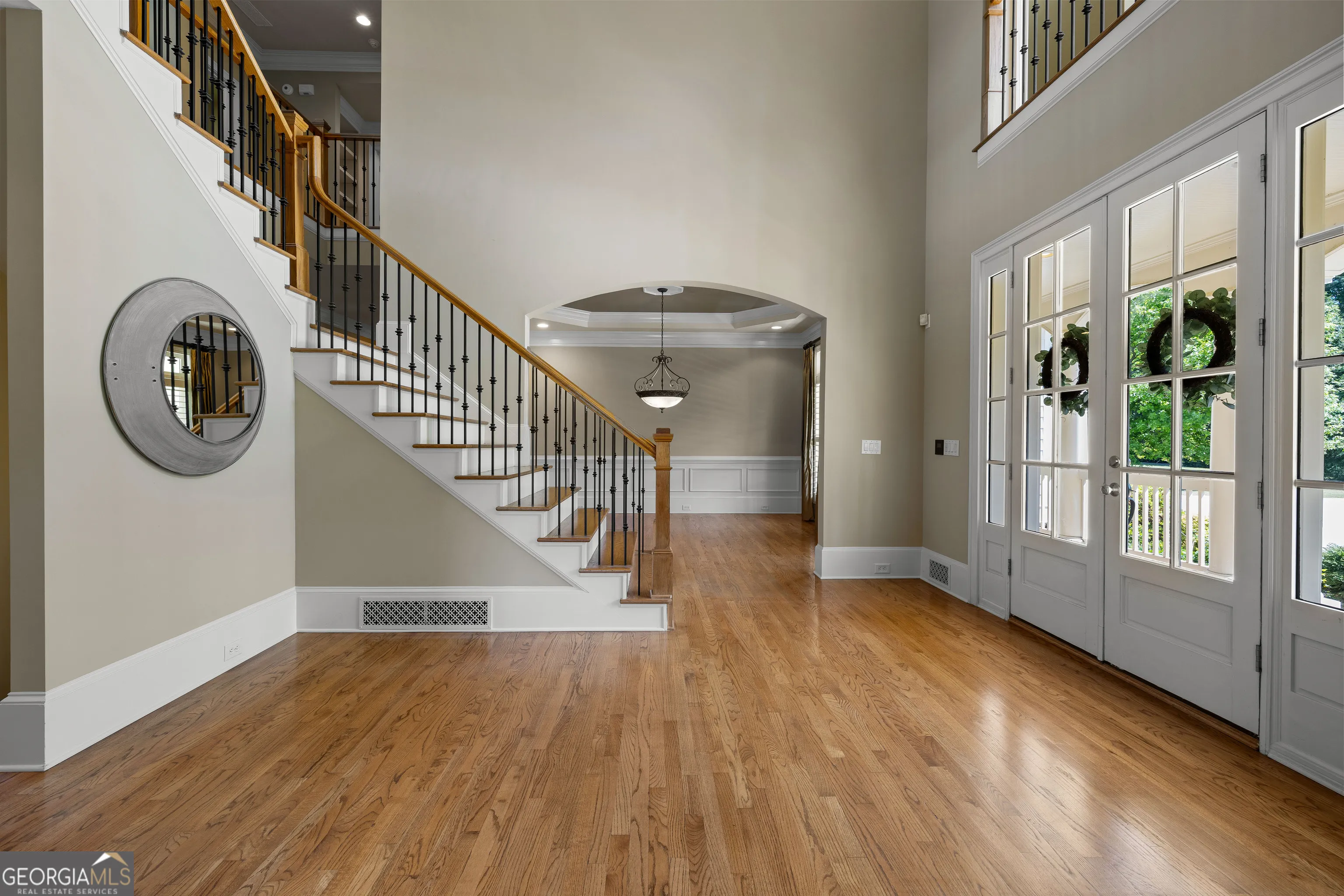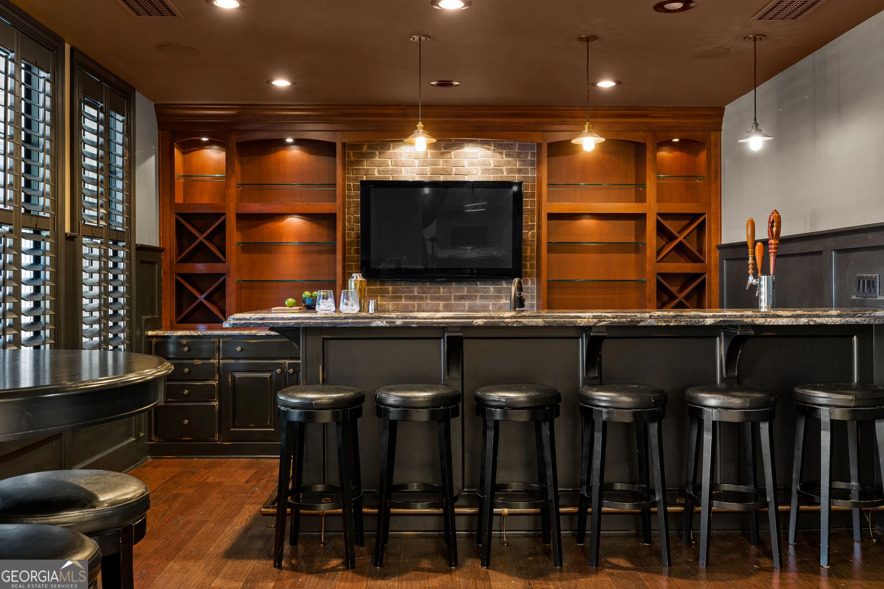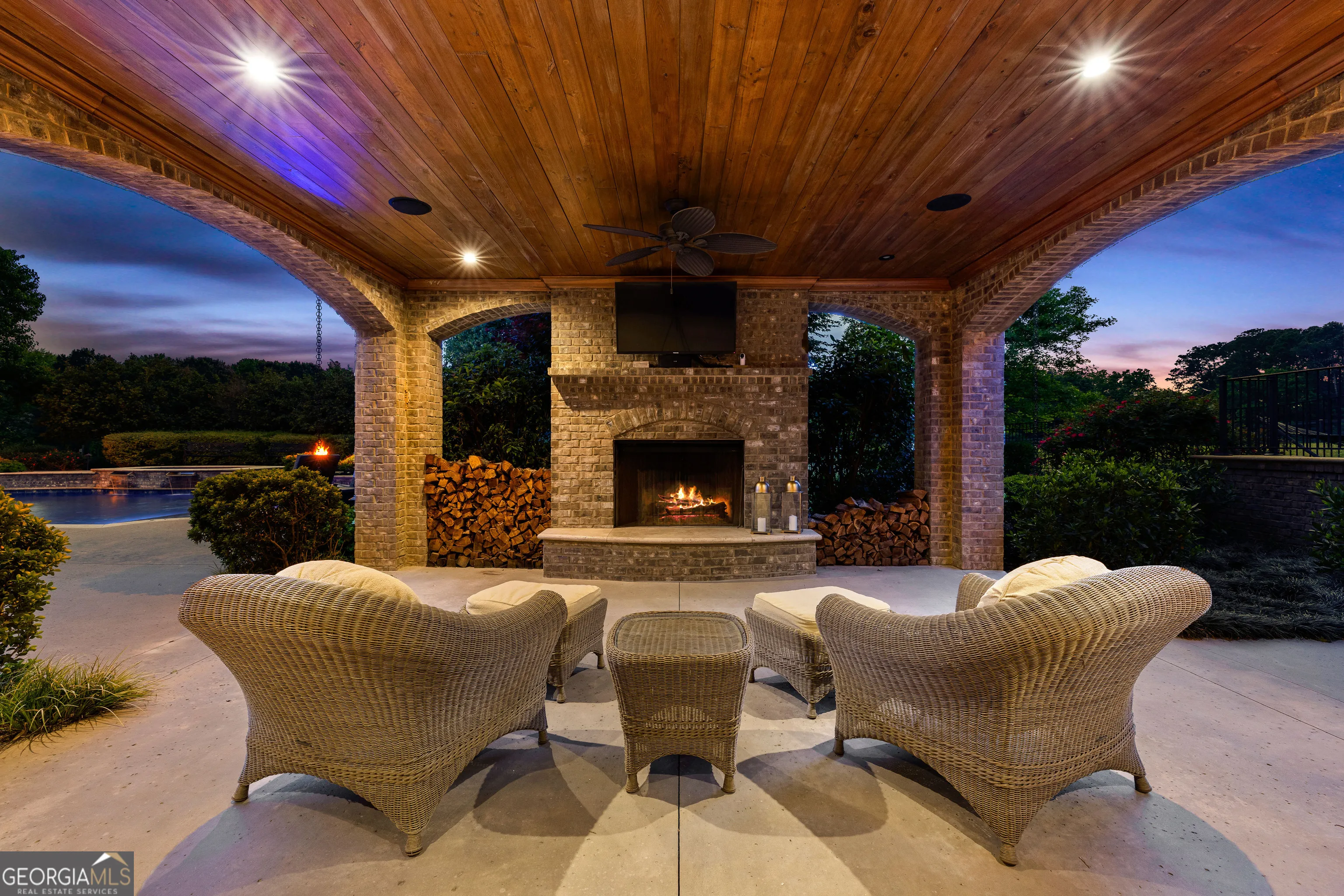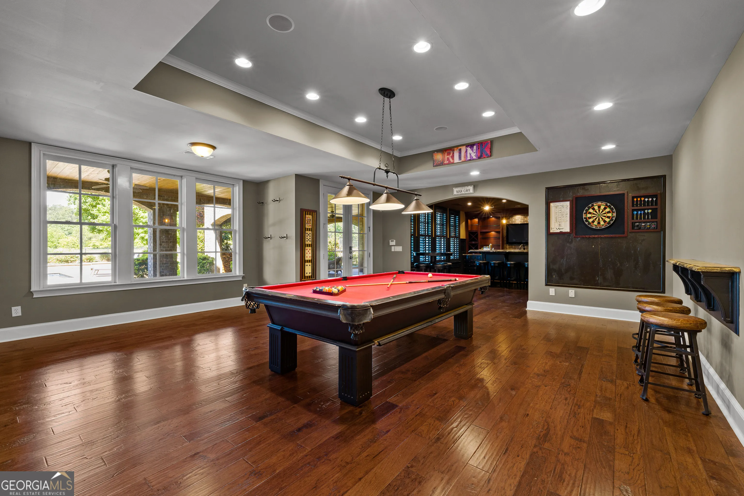 Set on five acres, this amazing custom estate is designed for elevated everyday living and unforgettable entertaining! This property checks every box with a gunite pebbletech pool & spa, three floors of living space includes: 7 bedrooms, 5 full baths, 2 half baths, 6 fireplaces, 3 laundry rooms, library, keeping room, theater room, billiard room, full bar and lounge! The perfect blend of luxury and function both inside and out. The main level features a two-story double door front entry to the grand staircase, hardwood floors, coffered ceilings, and a beautiful, well-appointed kitchen anchored by an oversized granite island with seating and built-in wine rack. Multiple gathering spaces including a keeping room offers functionality and sophistication with custom bookcases and a stone fireplace, and the main living room boasts floor-to-soaring ceiling windows with its own fireplace. The main level is complete with a library or dedicated office space, formal dining room with butler’s pantry, and tiled mudroom with open shelving pantry, standalone deep freezer and standalone refrigerator, custom drop zone, and direct access to all 4 car garages. The bedroom on main offers flexibility with a full bath, custom closet, and a private balcony. Beautiful hardwood flooring continues upstairs to the primary suite – a true retreat with a spacious sitting area, fireplace, private balcony overlooking the pool, whirlpool bath, separate tiled shower, dual vanities, and custom his & her closets with granite dresser and peninsula. Three generously sized secondary bedrooms, laundry room with storage, private loft area, and a rear staircase enhance comfort and flow to complete the upstairs. The finished terrace level is designed to impress, featuring a full theater room, lounge, billiards area, half bath, and a phenomenal custom granite bar complete with sink, dishwasher, dual mini refrigerators, ice machine, and a three-tap kegerator. Two terrace level bedrooms with a full bath, have direct pool access via french doors. Enjoy your private luxury resort with a backyard thoughtfully designed for year-round enjoyment featuring a two-story 20′ porch with a wood-burning fireplace patio and a separate covered and beamed deck with gas fireplace offering deep shade and no shortage of space to entertain. Layered outdoor experiences from the massive gunite pool with tanning ledge, hot tub, and waterfall features to the kitchen herb garden, charming brick archways and sitting areas, meticulous landscaping, and serene pastoral views from every angle. A generous 4 car garage with a oversized storage area provides an accommodating space for everyone’s vehicle and tools. This expansive 5 acre lot has no HOA and is a rare offering of privacy, scale, and lifestyle that stands alone!