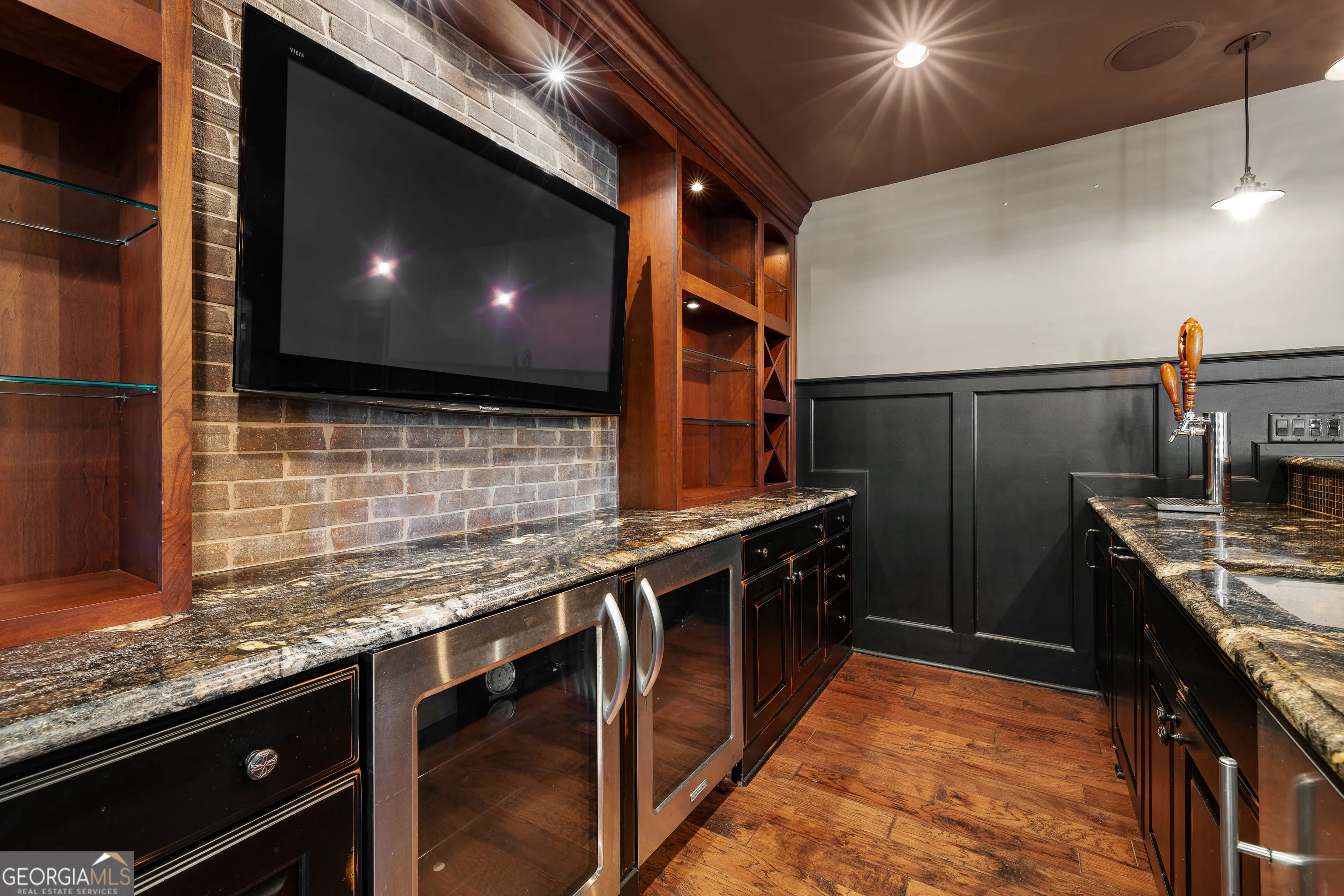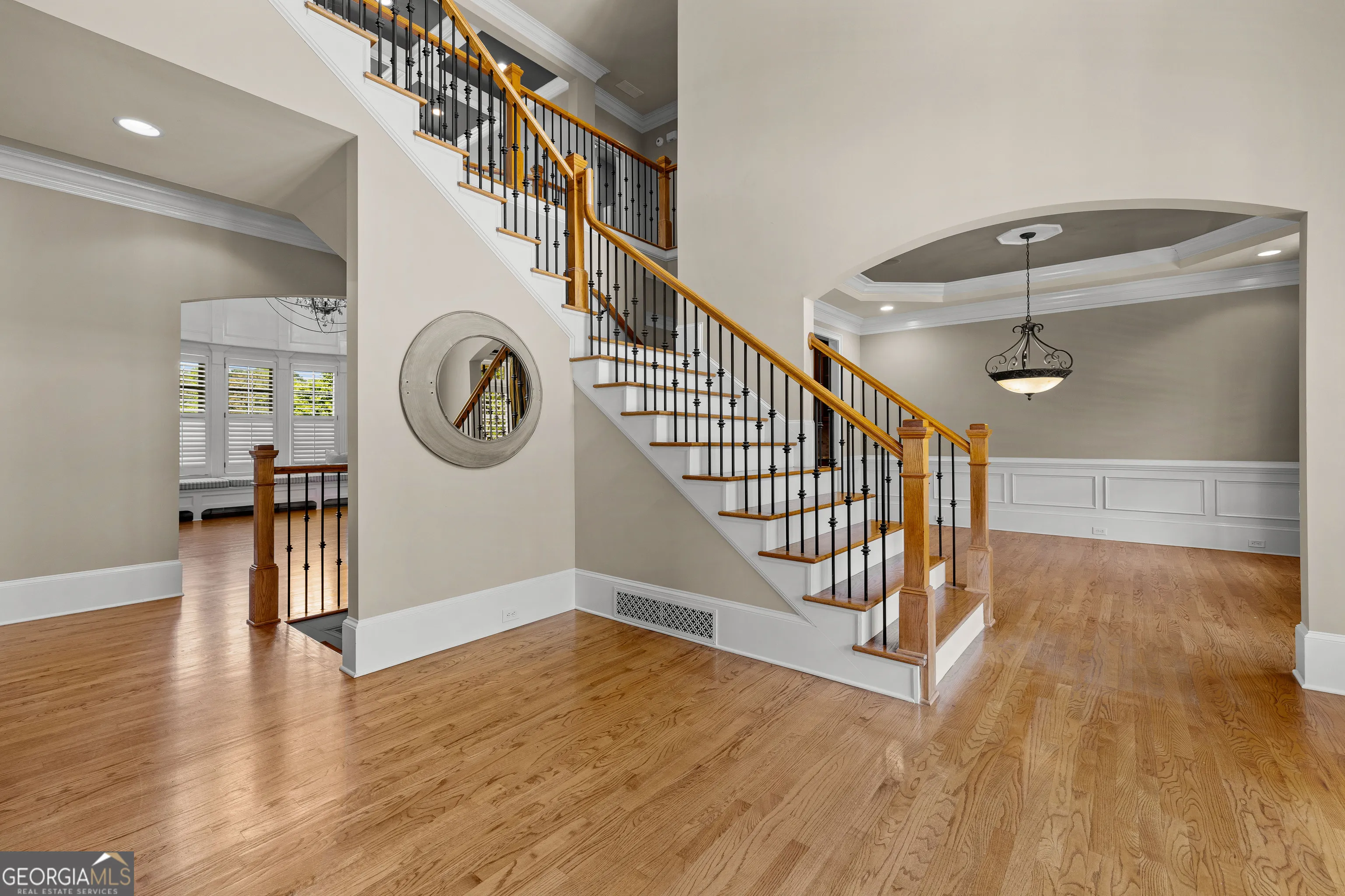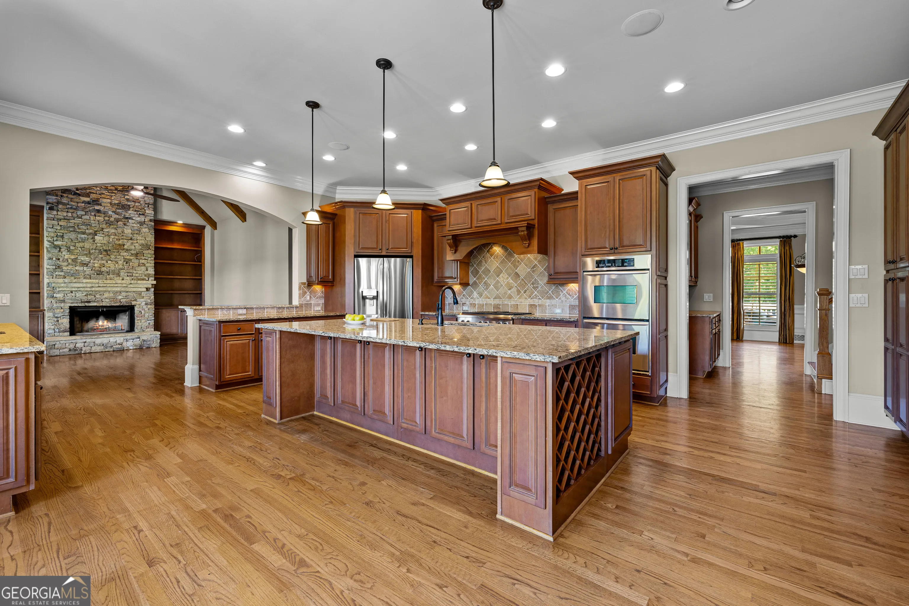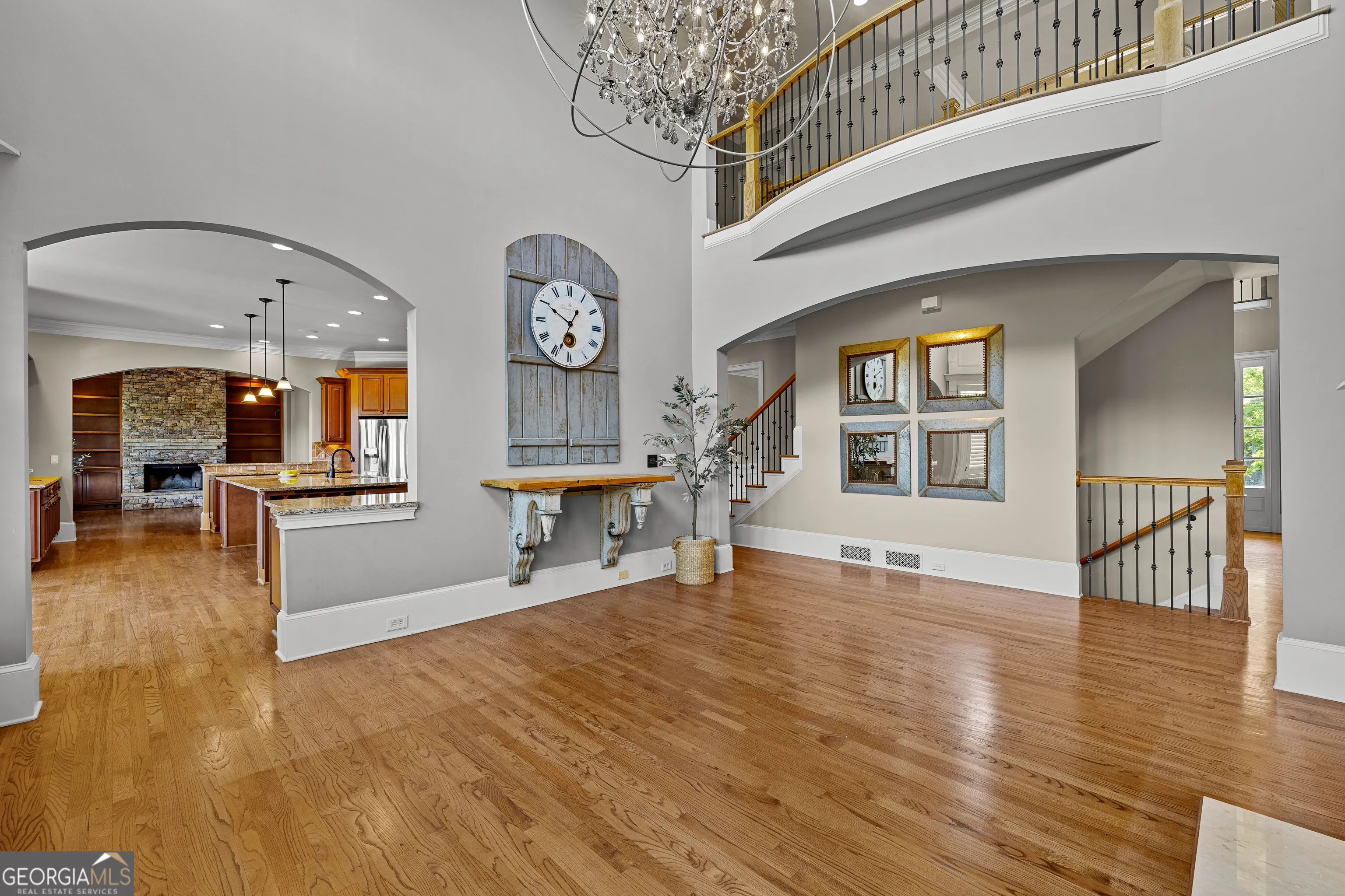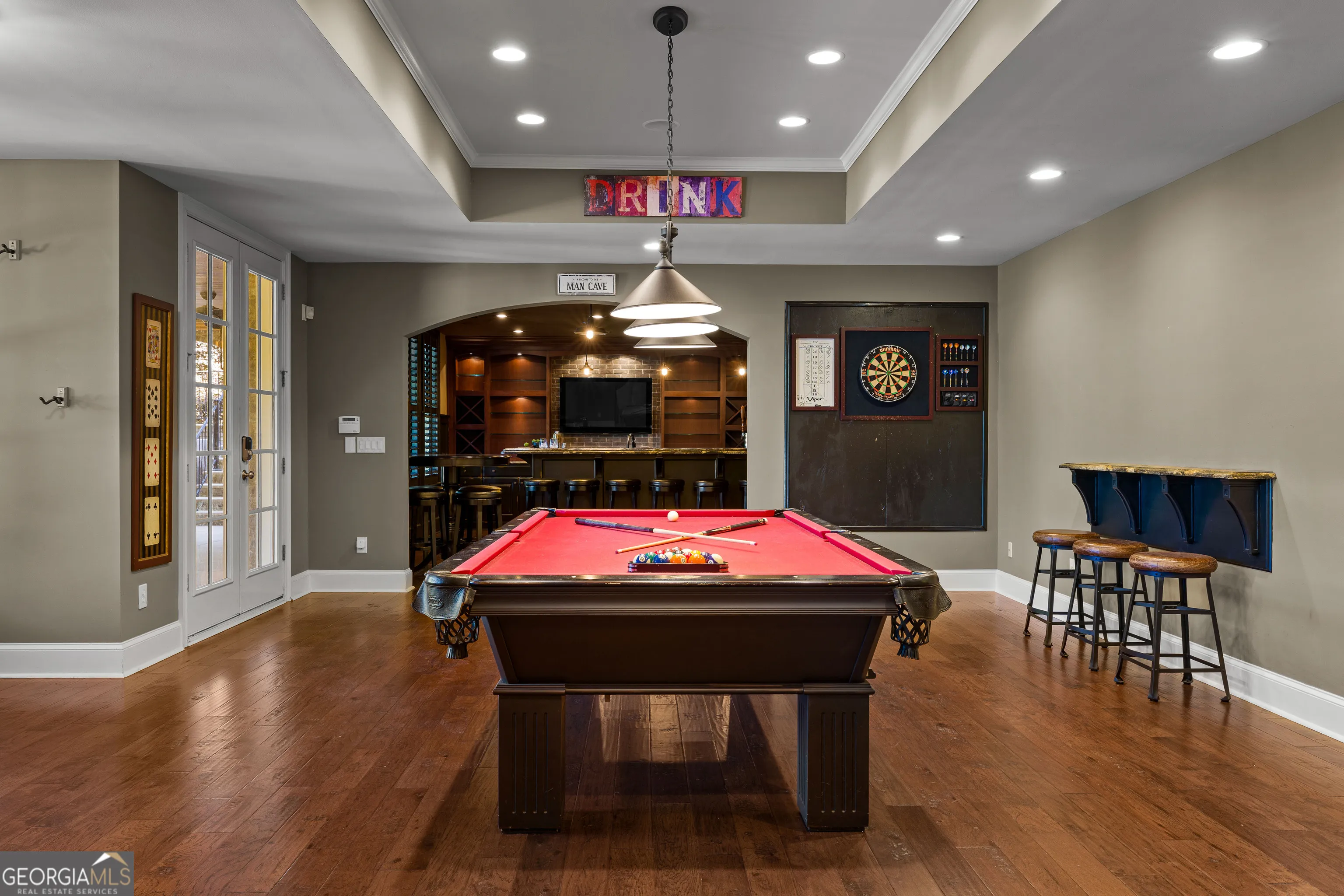 Set on five acres, this amazing custom estate is designed for elevated everyday living and unforgettable entertaining! This property checks every box with a gunite pebbletech pool & spa, three floors of living space includes: 7 bedrooms, 5 full baths, 2 half baths, 6 fireplaces, 3 laundry rooms, library, keeping room, theater room, billiard room, full bar and lounge! The perfect blend of luxury and function both inside and out. The main level features a two-story double door front entry to the grand staircase, hardwood floors, coffered ceilings, and a beautiful, well-appointed kitchen anchored by an oversized granite island with seating and built-in wine rack. Multiple gathering spaces including a keeping room offers functionality and sophistication with custom bookcases and a stone fireplace, and the main living room boasts floor-to-soaring ceiling windows with its own fireplace. The main level is complete with a library or dedicated office space, formal dining room with butler’s pantry, and tiled mudroom with open shelving pantry, standalone deep freezer and standalone refrigerator, custom drop zone, and direct access to all 4 car garages. The bedroom on main offers flexibility with a full bath, custom closet, and a private balcony. Beautiful hardwood flooring continues upstairs to the primary suite – a true retreat with a spacious sitting area, fireplace, private balcony overlooking the pool, whirlpool bath, separate tiled shower, dual vanities, and custom his & her closets with granite dresser and peninsula. Three generously sized secondary bedrooms, laundry room with storage, private loft area, and a rear staircase enhance comfort and flow to complete the upstairs. The finished terrace level is designed to impress, featuring a full theater room, lounge, billiards area, half bath, and a phenomenal custom granite bar complete with sink, dishwasher, dual mini refrigerators, ice machine, and a three-tap kegerator. Two terrace level bedrooms with a full bath, have direct pool access via french doors. Enjoy your private luxury resort with a backyard thoughtfully designed for year-round enjoyment featuring a two-story 20′ porch with a wood-burning fireplace patio and a separate covered and beamed deck with gas fireplace offering deep shade and no shortage of space to entertain. Layered outdoor experiences from the massive gunite pool with tanning ledge, hot tub, and waterfall features to the kitchen herb garden, charming brick archways and sitting areas, meticulous landscaping, and serene pastoral views from every angle. A generous 4 car garage with a oversized storage area provides an accommodating space for everyone’s vehicle and tools. This expansive 5 acre lot has no HOA and is a rare offering of privacy, scale, and lifestyle that stands alone!