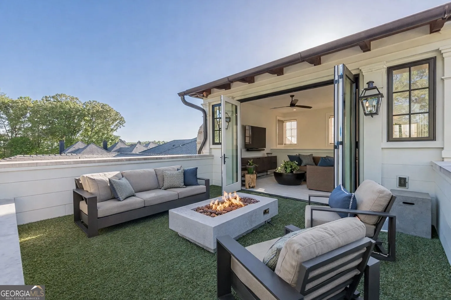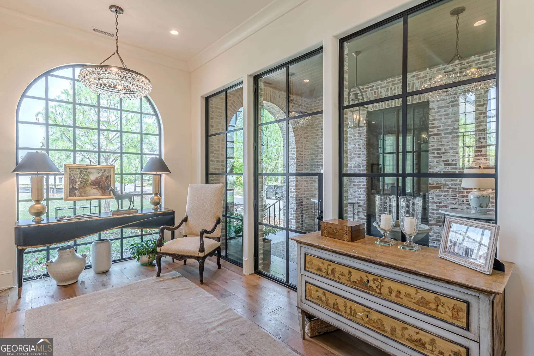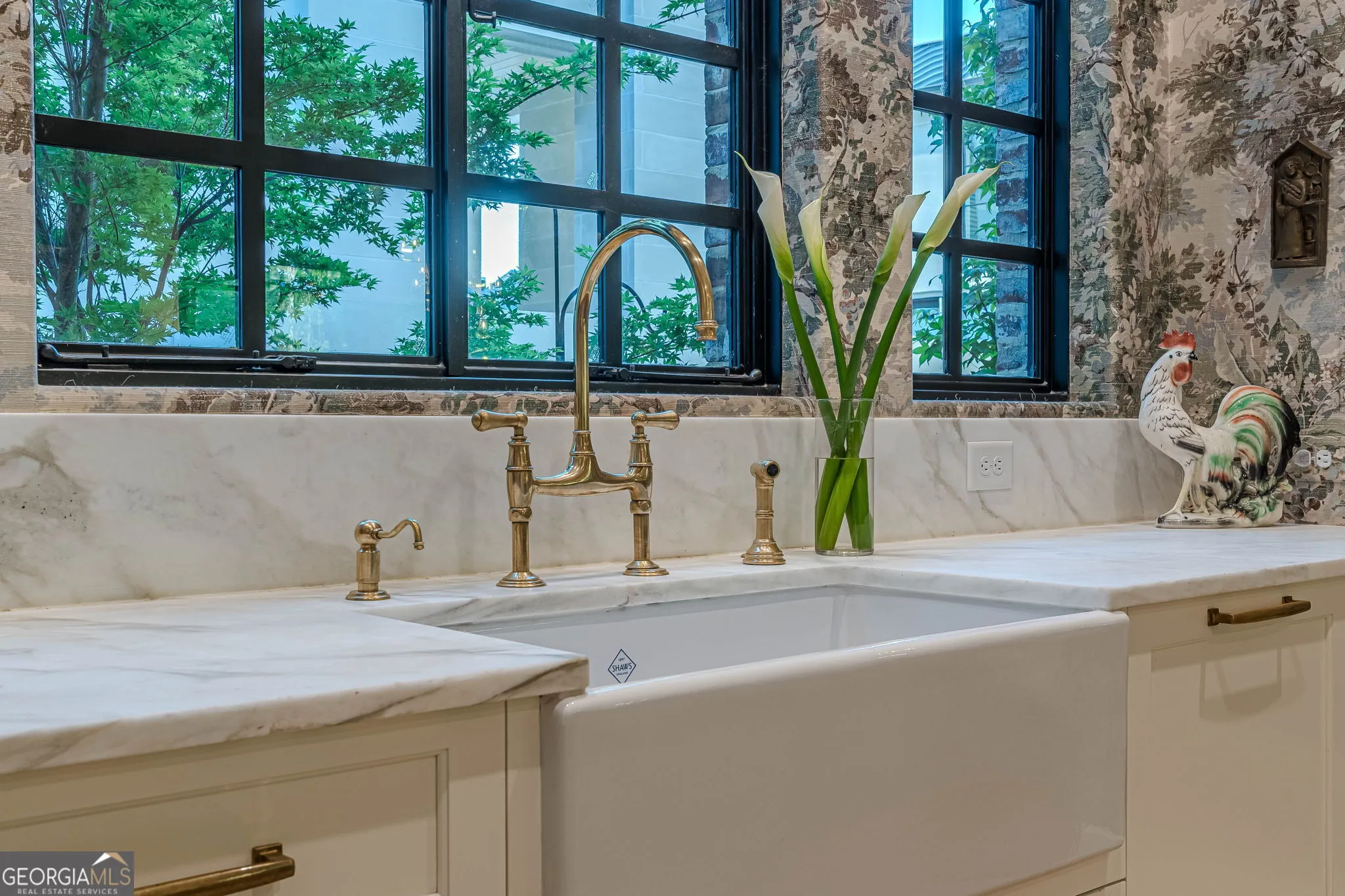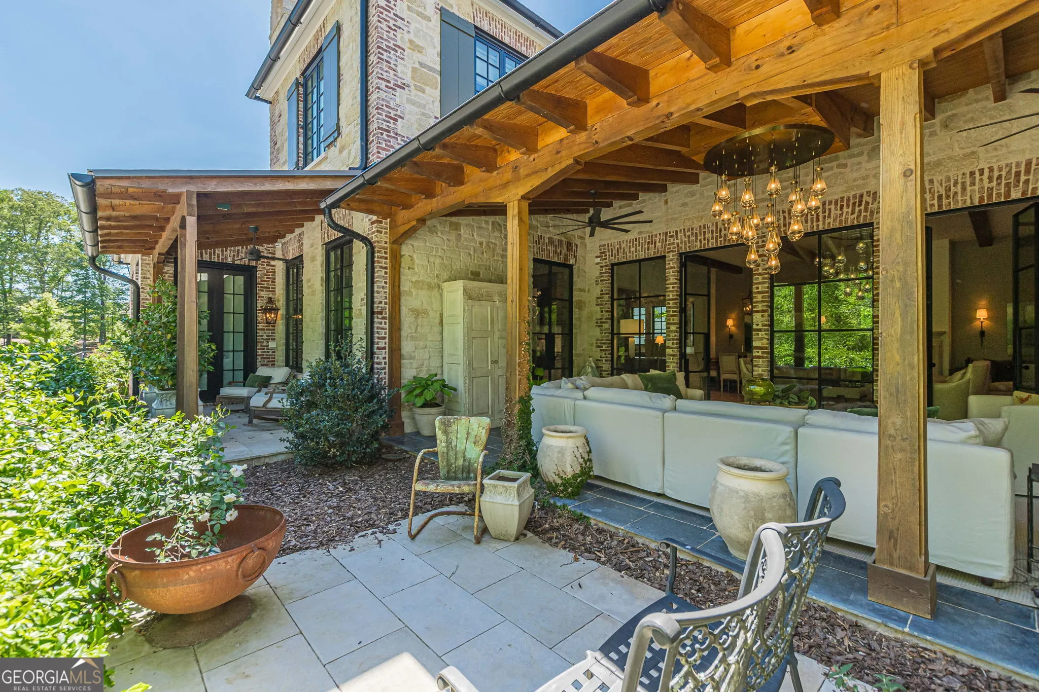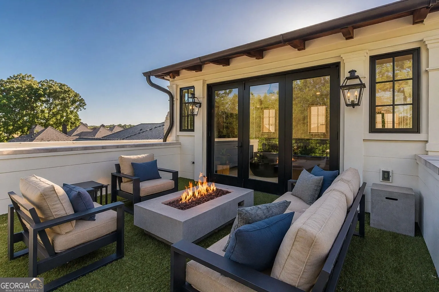 Tucked within the heart of the Town at Trilith overlooking The Great Lawn, this European-inspired villa is a masterclass in intentional design, craftsmanship, and quiet luxury. Conceived in collaboration with designer Buffy Ferguson, architect Lew Oliver, and builder 1023 Construction, the residence reflects a timeless, layered vision inspired by the villages of Southern France. Positioned on a coveted corner homesite with outdoor living on both sides of the home and a rooftop retreat, this custom home blends architectural romance with modern livability. From the moment you arrive, the limestone and reclaimed brick facade sets the tone-grounded, elegant, and enduring. An open-air entry hall invites exploration, while the home’s meandering layout creates a sense of discovery that feels both sophisticated and deeply personal. Inside, reclaimed antique French oak floors, marble countertops, designer wallpaper, steel windows and doors on the main level, a custom copper range hood, Lacanche range, Sub-Zero refrigerator, black walnut dry bar, and bespoke millwork speak to the exceptional quality woven throughout. The kitchen is as functional as it is beautiful, anchored by a custom deVOL prep table imported from England, floating glass pantry shelves, and artful finishes that create a collected, editorial feel. The primary suite offers its own serene retreat with marble, custom closets, electric shades, and richly layered details designed to feel both luxurious and restorative. Multiple gathering spaces, including the loggia, rooftop terrace, and a series of beautifully composed interiors, make the home ideal for both intimate living and elevated entertaining. Built with substance as well as style, the home also features geothermal systems, tankless water heaters, spray foam insulation, whole-house sprinkler and security systems, professional landscaping, slate roof detailing, and custom lighting throughout. The result is a home of rare character and quality-architecturally significant, beautifully executed, and unmistakably special. Beyond the interiors, the home continues to live beautifully outdoors. With inviting spaces on both sides of the residence and a rooftop terrace designed for lounging, gathering, and evening conversation, the outdoor experience feels like a natural extension of the home’s architecture-private, polished, and thoughtfully curated. And just beyond your doors, the Town at Trilith offers a lifestyle unlike anything else in the Atlanta area, where beautifully planned streetscapes, green spaces, dining, shopping, entertainment, and a true sense of community create an experience that is both vibrant and effortlessly walkable.