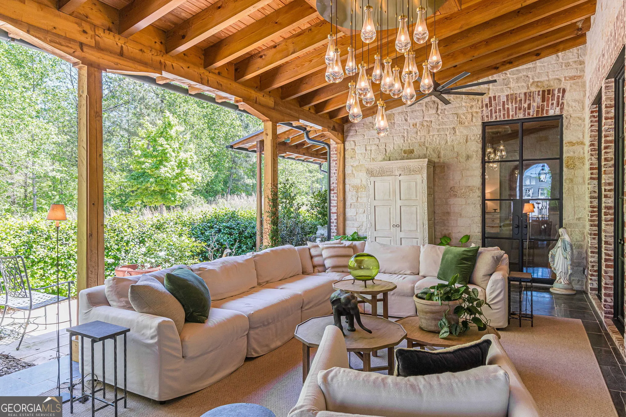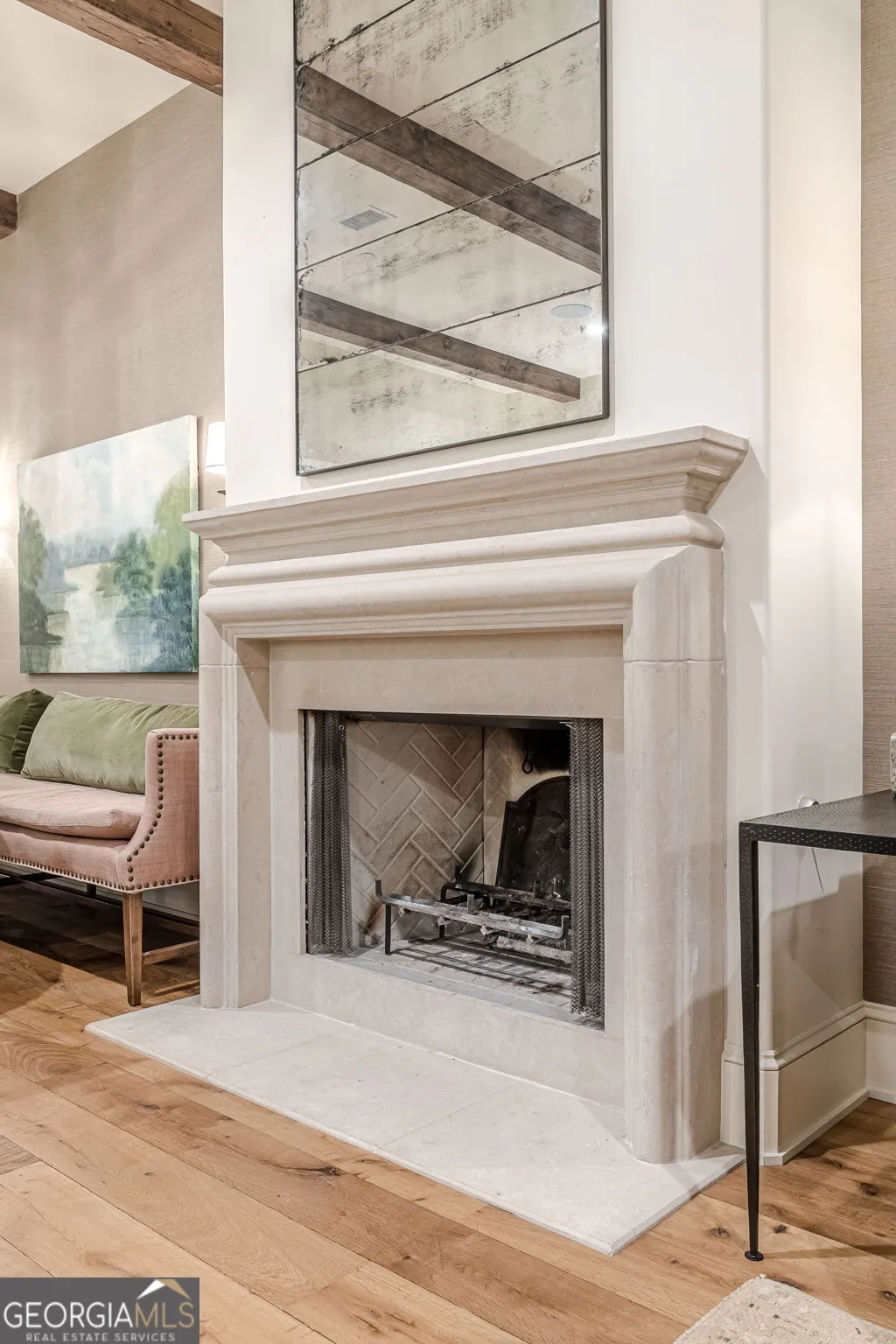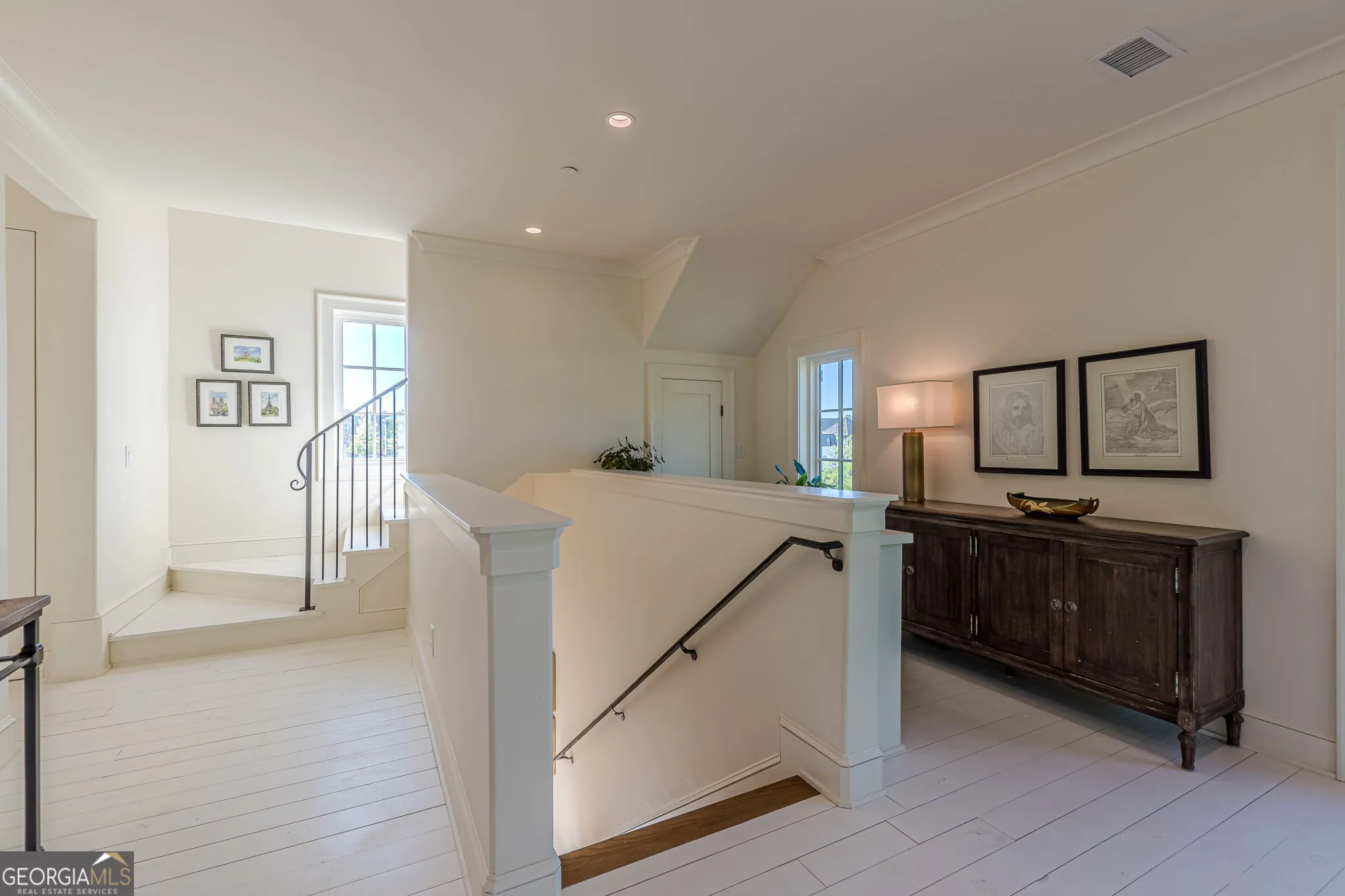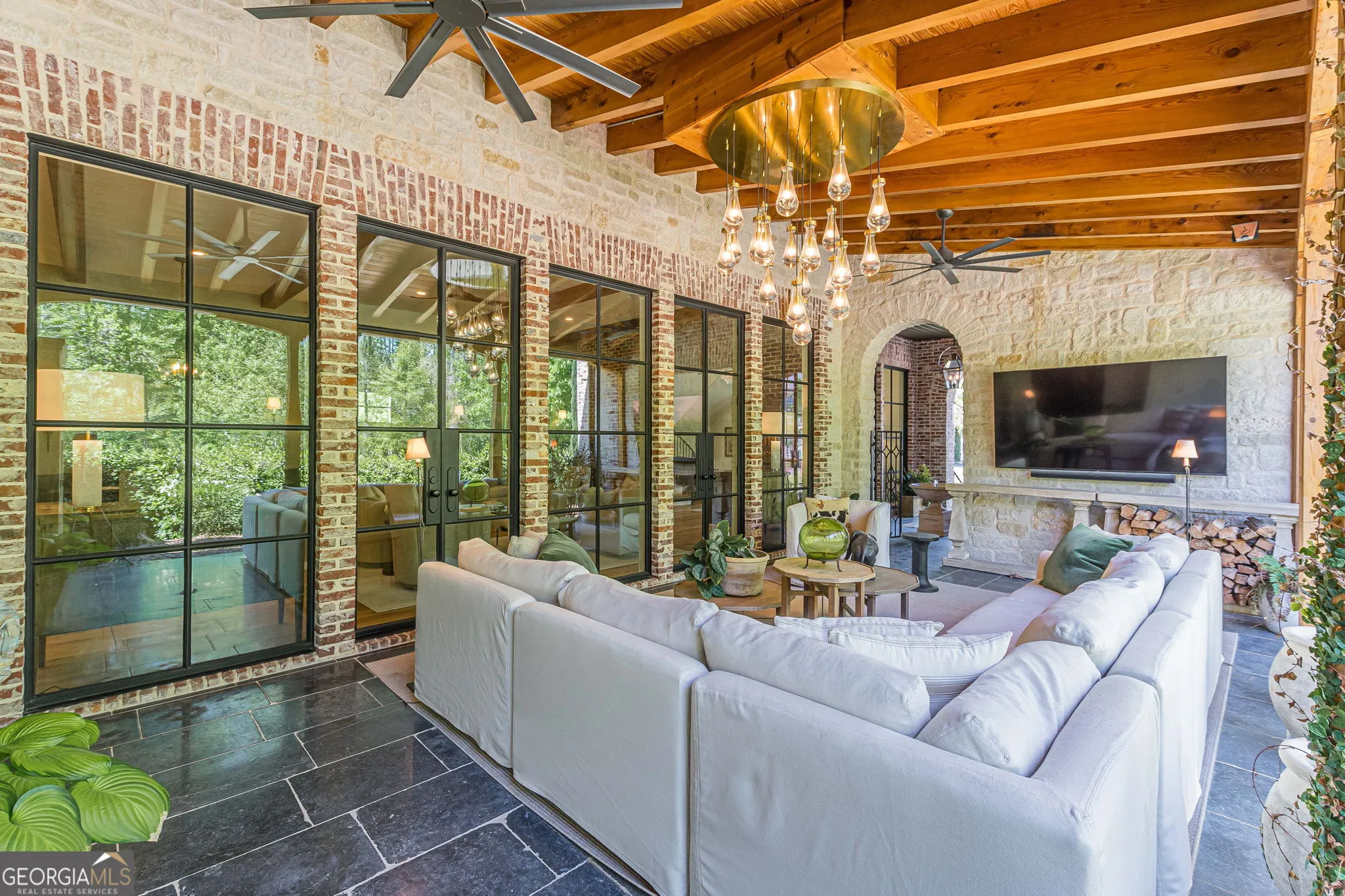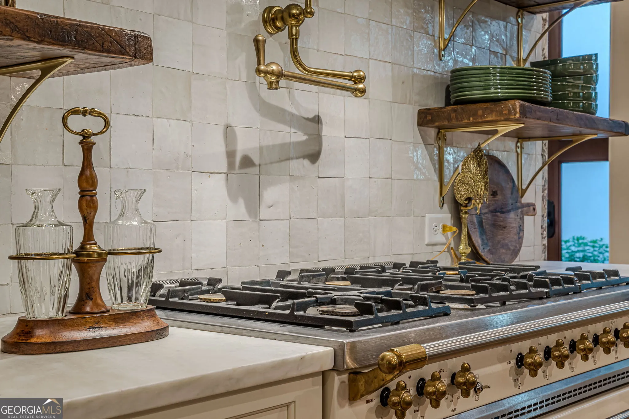 Tucked within the heart of the Town at Trilith overlooking The Great Lawn, this European-inspired villa is a masterclass in intentional design, craftsmanship, and quiet luxury. Conceived in collaboration with designer Buffy Ferguson, architect Lew Oliver, and builder 1023 Construction, the residence reflects a timeless, layered vision inspired by the villages of Southern France. Positioned on a coveted corner homesite with outdoor living on both sides of the home and a rooftop retreat, this custom home blends architectural romance with modern livability. From the moment you arrive, the limestone and reclaimed brick facade sets the tone-grounded, elegant, and enduring. An open-air entry hall invites exploration, while the home’s meandering layout creates a sense of discovery that feels both sophisticated and deeply personal. Inside, reclaimed antique French oak floors, marble countertops, designer wallpaper, steel windows and doors on the main level, a custom copper range hood, Lacanche range, Sub-Zero refrigerator, black walnut dry bar, and bespoke millwork speak to the exceptional quality woven throughout. The kitchen is as functional as it is beautiful, anchored by a custom deVOL prep table imported from England, floating glass pantry shelves, and artful finishes that create a collected, editorial feel. The primary suite offers its own serene retreat with marble, custom closets, electric shades, and richly layered details designed to feel both luxurious and restorative. Multiple gathering spaces, including the loggia, rooftop terrace, and a series of beautifully composed interiors, make the home ideal for both intimate living and elevated entertaining. Built with substance as well as style, the home also features geothermal systems, tankless water heaters, spray foam insulation, whole-house sprinkler and security systems, professional landscaping, slate roof detailing, and custom lighting throughout. The result is a home of rare character and quality-architecturally significant, beautifully executed, and unmistakably special. Beyond the interiors, the home continues to live beautifully outdoors. With inviting spaces on both sides of the residence and a rooftop terrace designed for lounging, gathering, and evening conversation, the outdoor experience feels like a natural extension of the home’s architecture-private, polished, and thoughtfully curated. And just beyond your doors, the Town at Trilith offers a lifestyle unlike anything else in the Atlanta area, where beautifully planned streetscapes, green spaces, dining, shopping, entertainment, and a true sense of community create an experience that is both vibrant and effortlessly walkable.