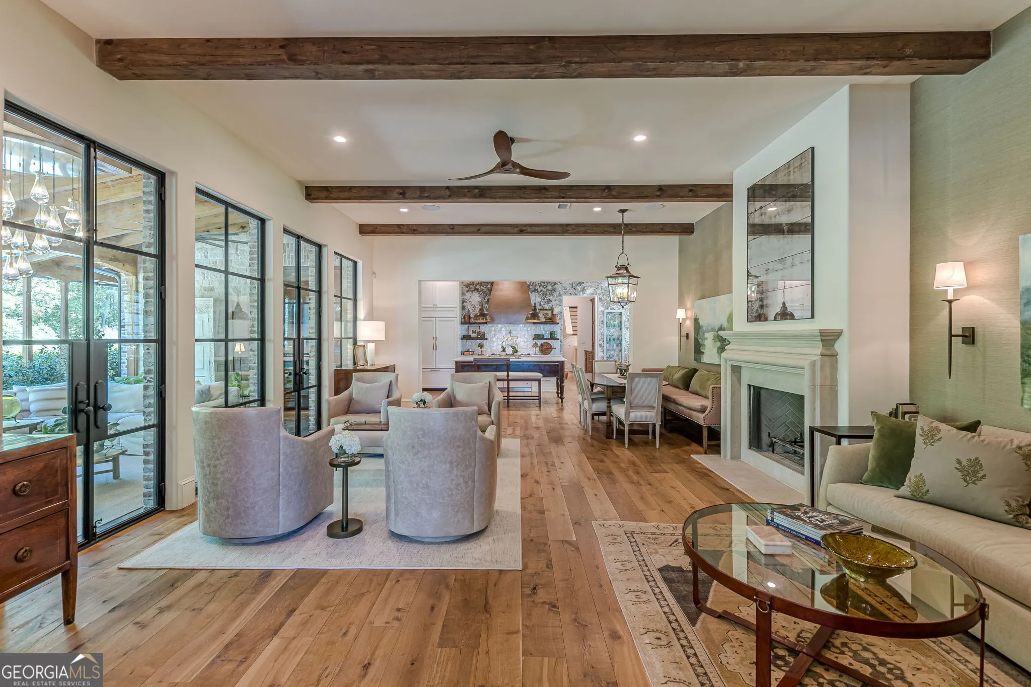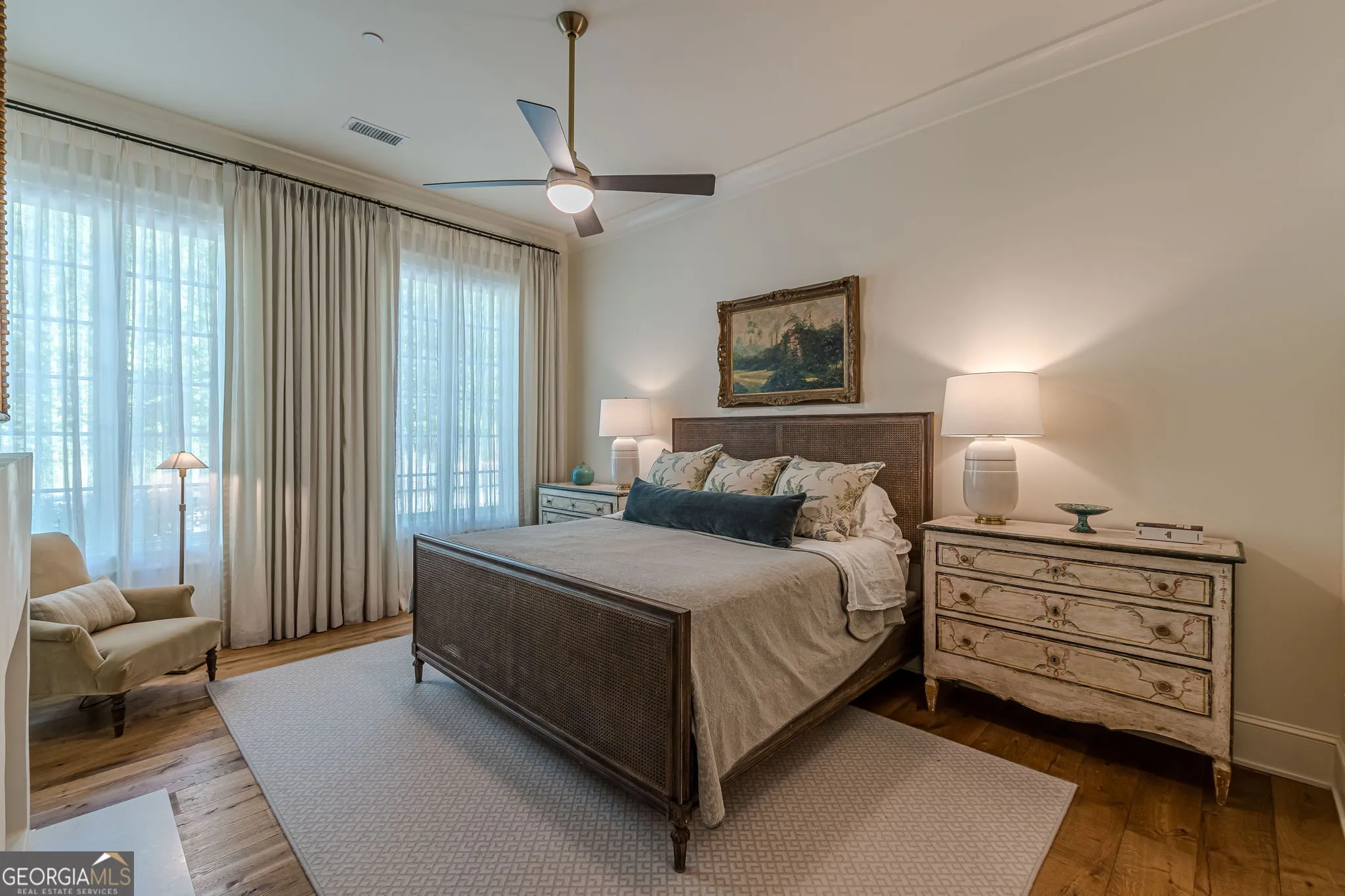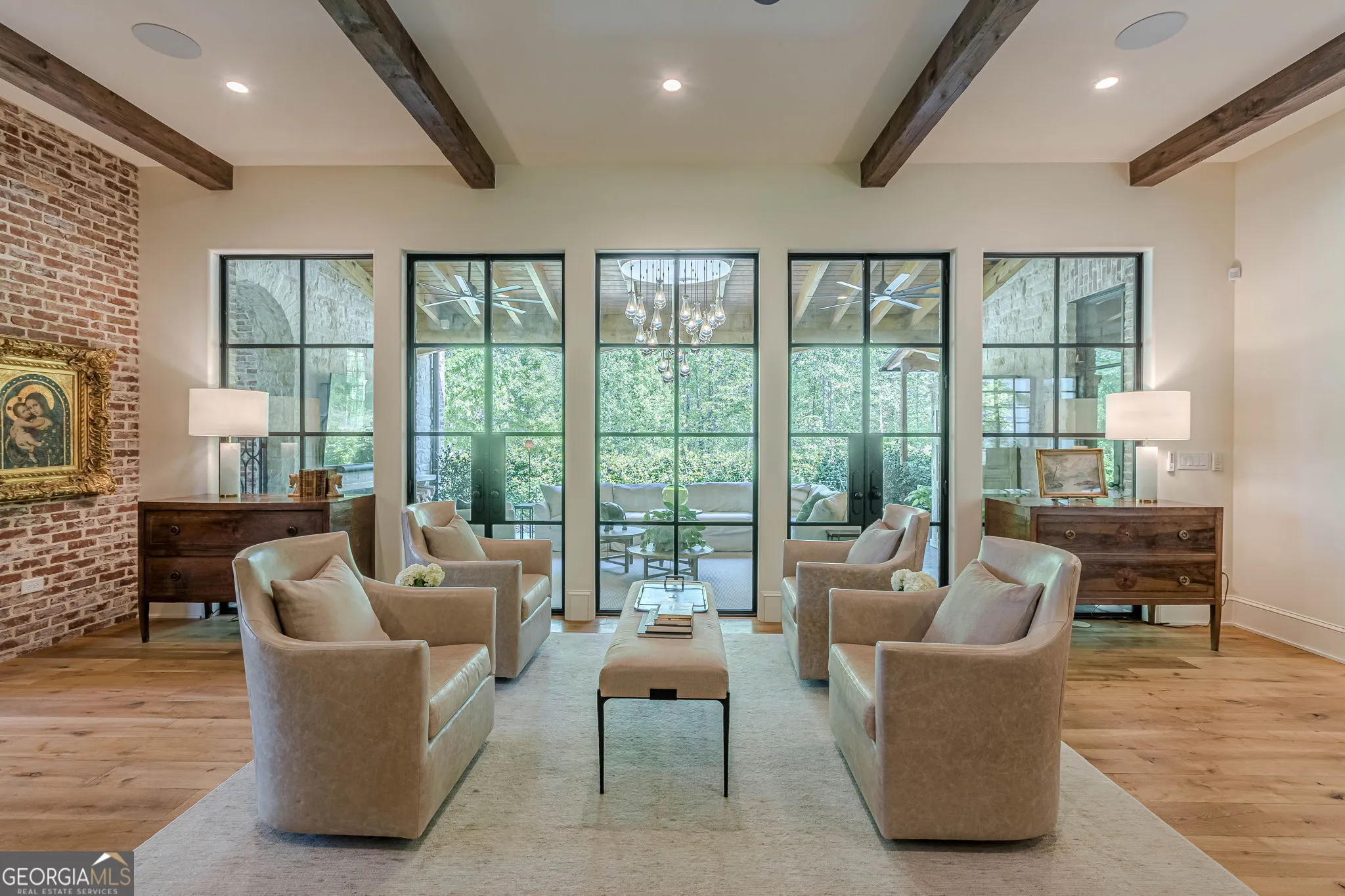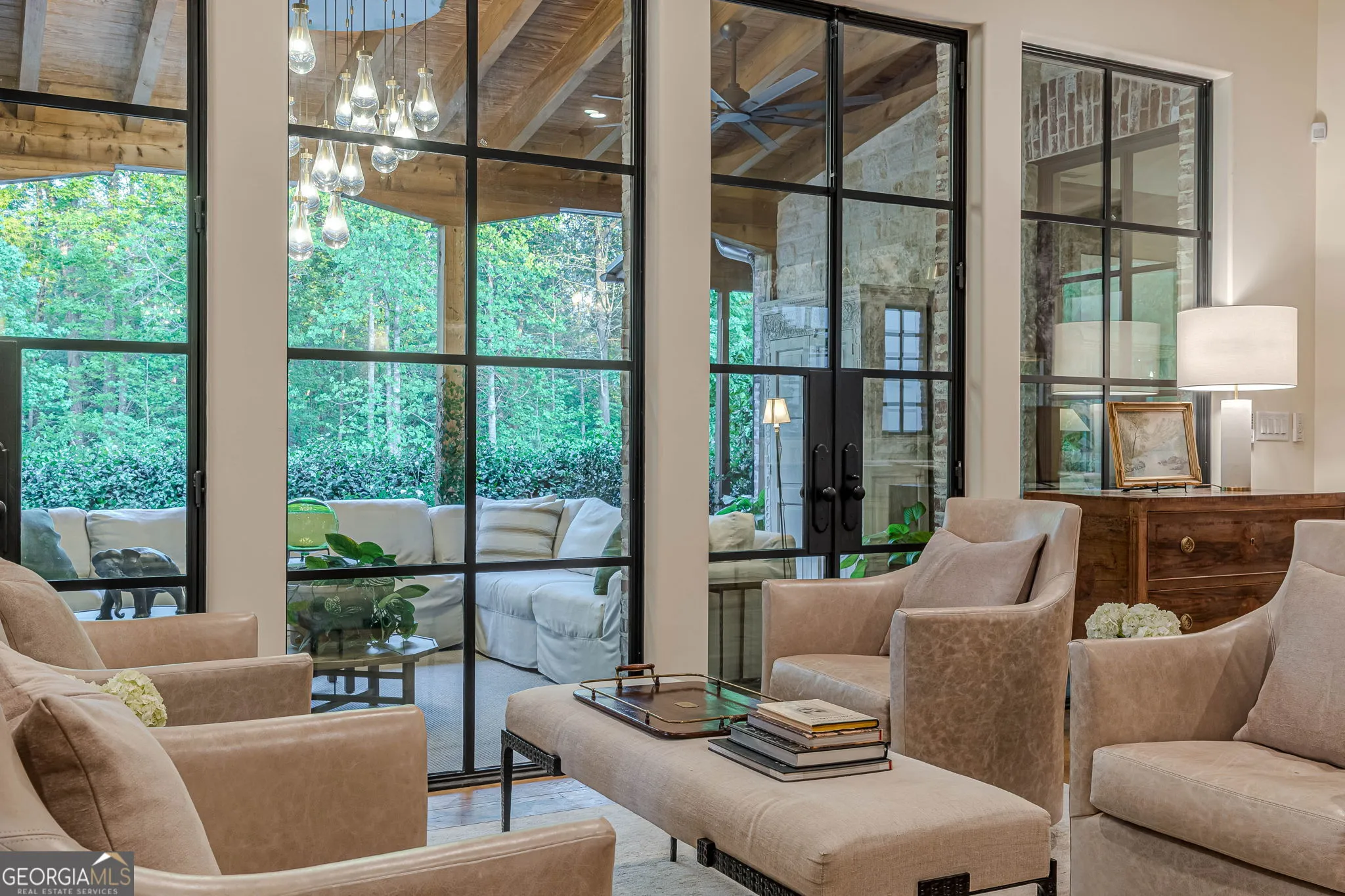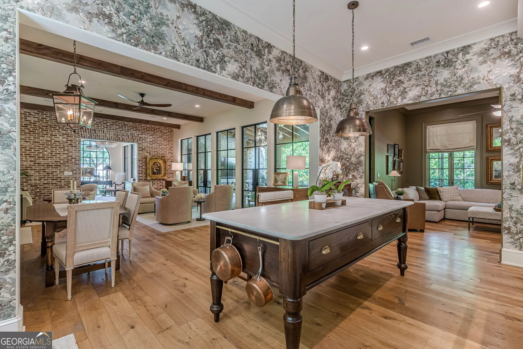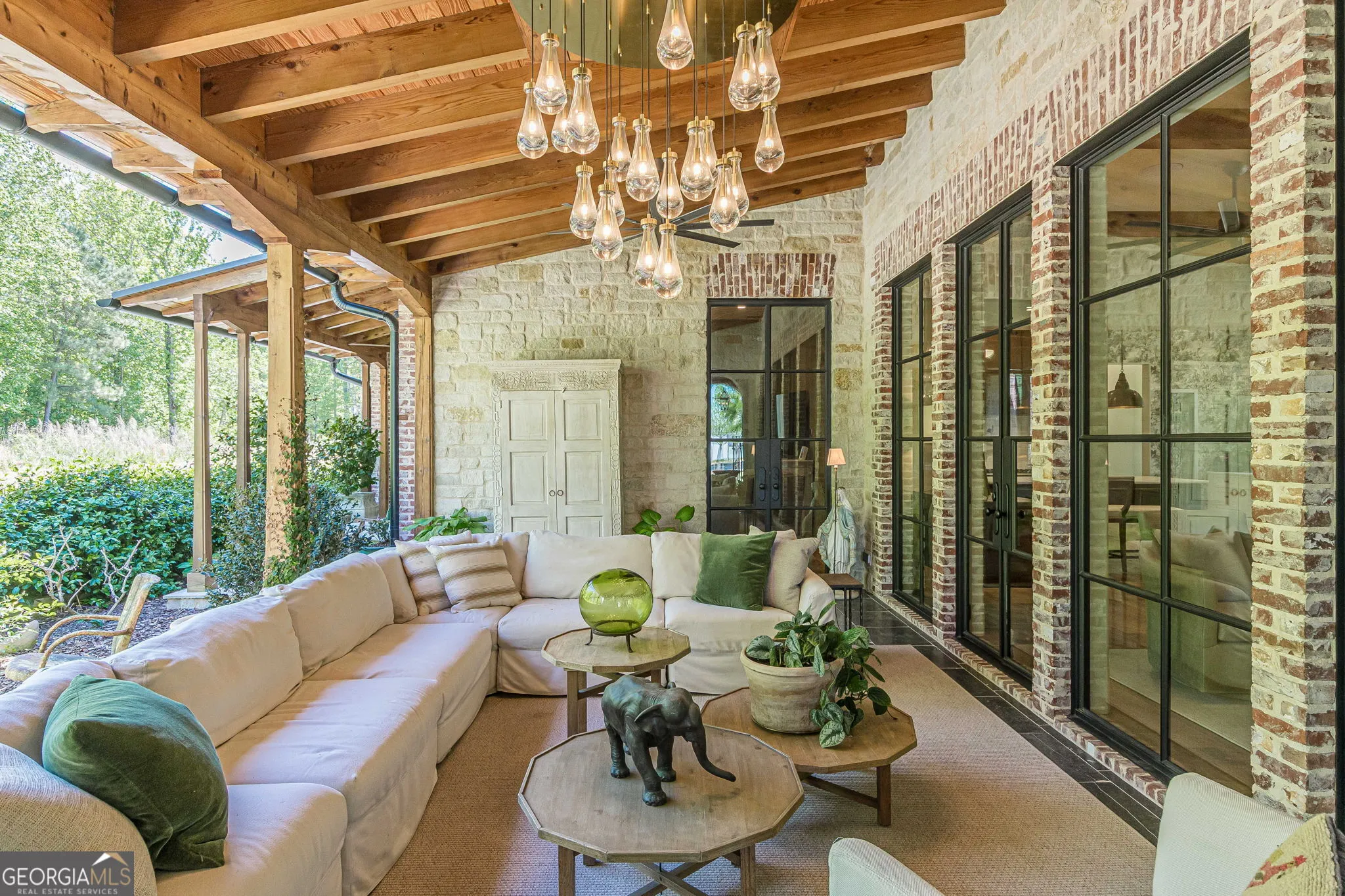 Tucked within the heart of the Town at Trilith overlooking The Great Lawn, this European-inspired villa is a masterclass in intentional design, craftsmanship, and quiet luxury. Conceived in collaboration with designer Buffy Ferguson, architect Lew Oliver, and builder 1023 Construction, the residence reflects a timeless, layered vision inspired by the villages of Southern France. Positioned on a coveted corner homesite with outdoor living on both sides of the home and a rooftop retreat, this custom home blends architectural romance with modern livability. From the moment you arrive, the limestone and reclaimed brick facade sets the tone-grounded, elegant, and enduring. An open-air entry hall invites exploration, while the home’s meandering layout creates a sense of discovery that feels both sophisticated and deeply personal. Inside, reclaimed antique French oak floors, marble countertops, designer wallpaper, steel windows and doors on the main level, a custom copper range hood, Lacanche range, Sub-Zero refrigerator, black walnut dry bar, and bespoke millwork speak to the exceptional quality woven throughout. The kitchen is as functional as it is beautiful, anchored by a custom deVOL prep table imported from England, floating glass pantry shelves, and artful finishes that create a collected, editorial feel. The primary suite offers its own serene retreat with marble, custom closets, electric shades, and richly layered details designed to feel both luxurious and restorative. Multiple gathering spaces, including the loggia, rooftop terrace, and a series of beautifully composed interiors, make the home ideal for both intimate living and elevated entertaining. Built with substance as well as style, the home also features geothermal systems, tankless water heaters, spray foam insulation, whole-house sprinkler and security systems, professional landscaping, slate roof detailing, and custom lighting throughout. The result is a home of rare character and quality-architecturally significant, beautifully executed, and unmistakably special. Beyond the interiors, the home continues to live beautifully outdoors. With inviting spaces on both sides of the residence and a rooftop terrace designed for lounging, gathering, and evening conversation, the outdoor experience feels like a natural extension of the home’s architecture-private, polished, and thoughtfully curated. And just beyond your doors, the Town at Trilith offers a lifestyle unlike anything else in the Atlanta area, where beautifully planned streetscapes, green spaces, dining, shopping, entertainment, and a true sense of community create an experience that is both vibrant and effortlessly walkable.