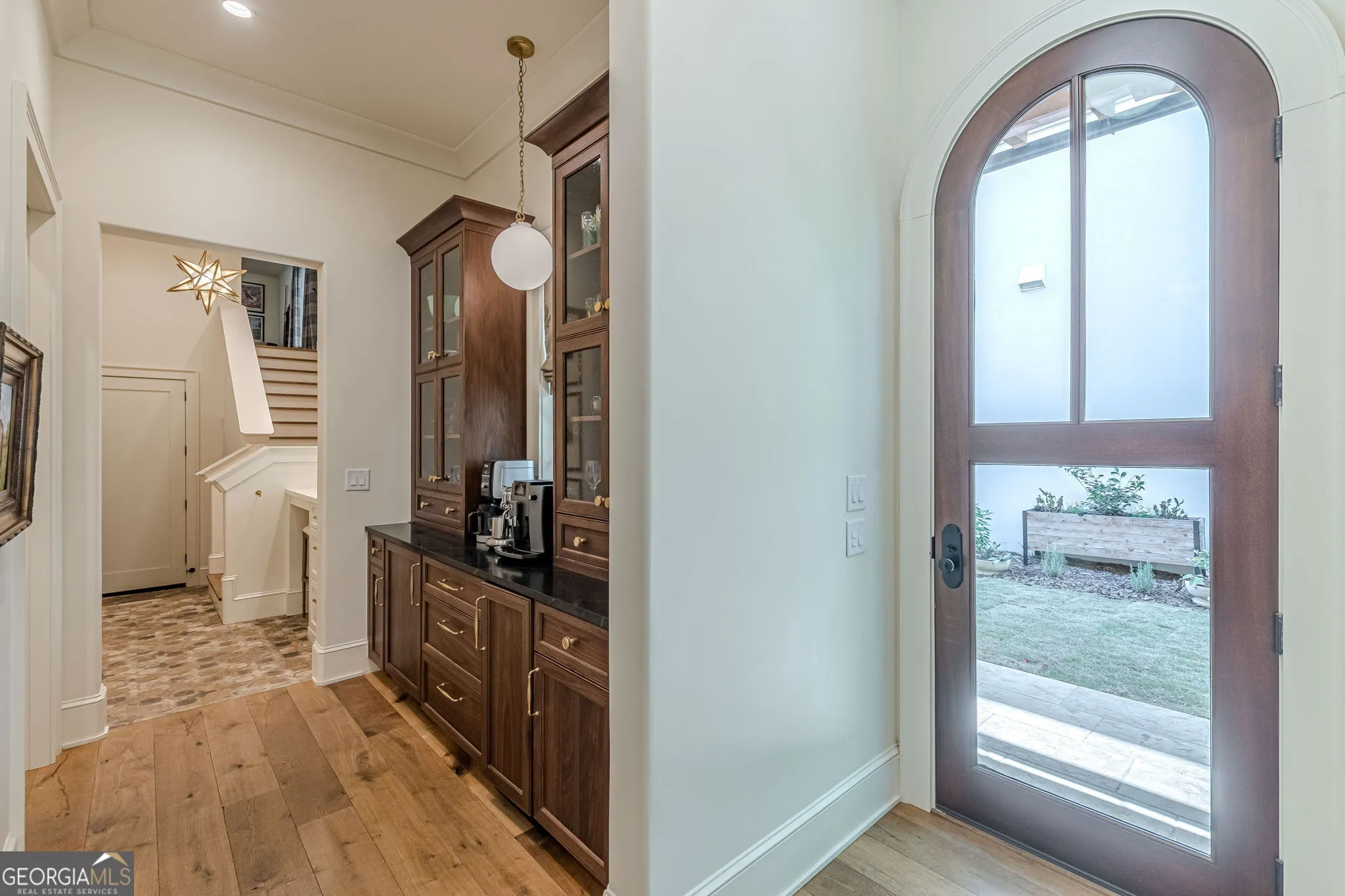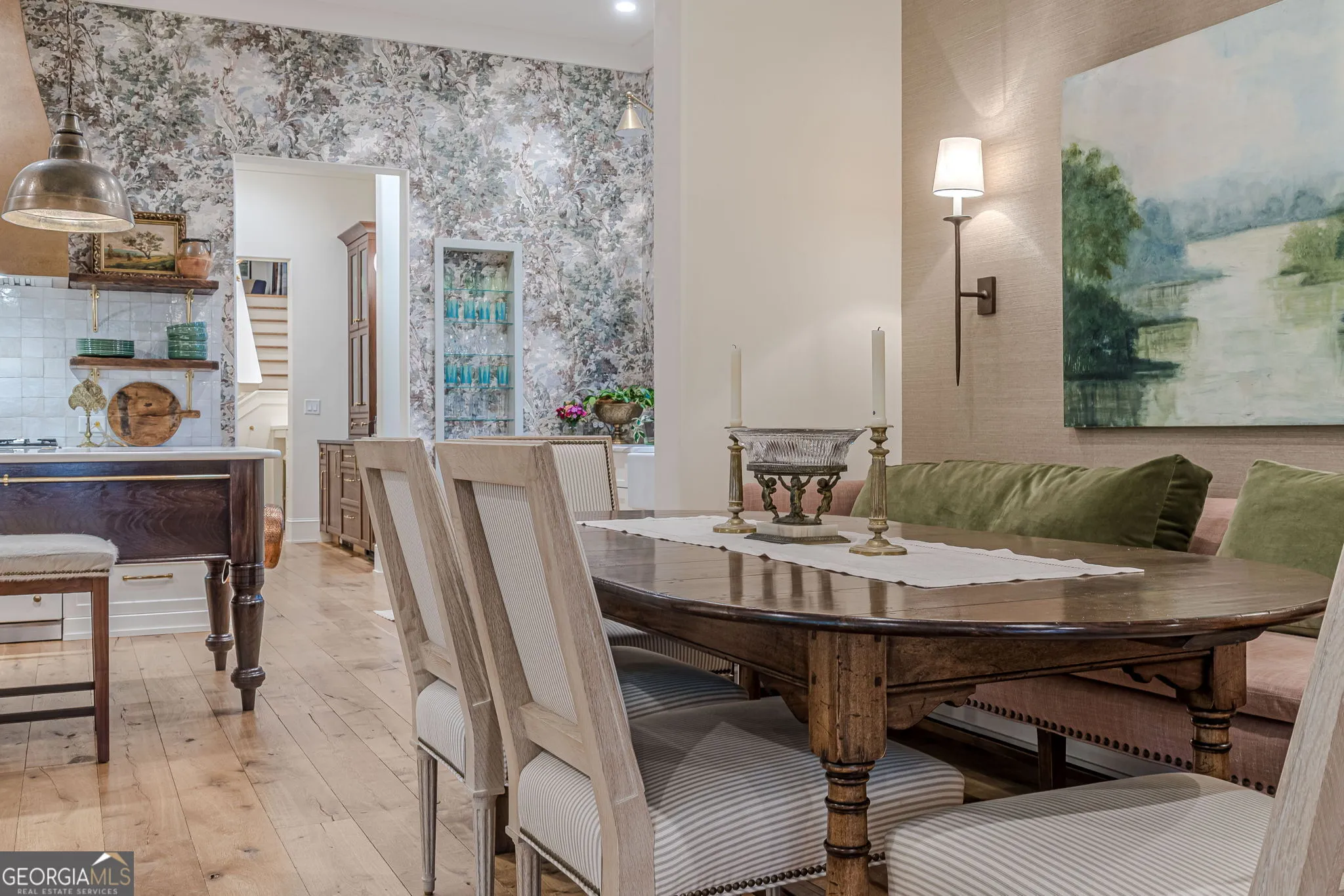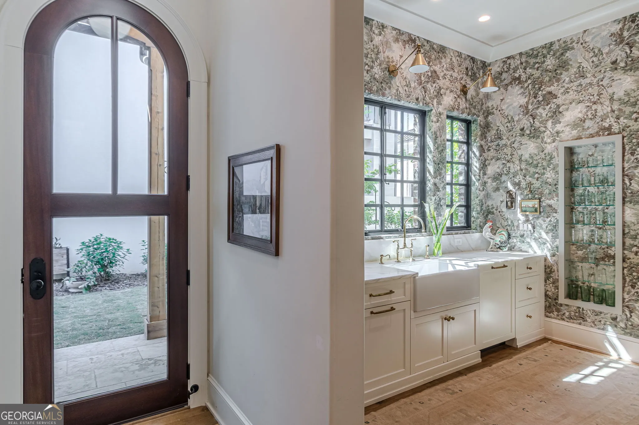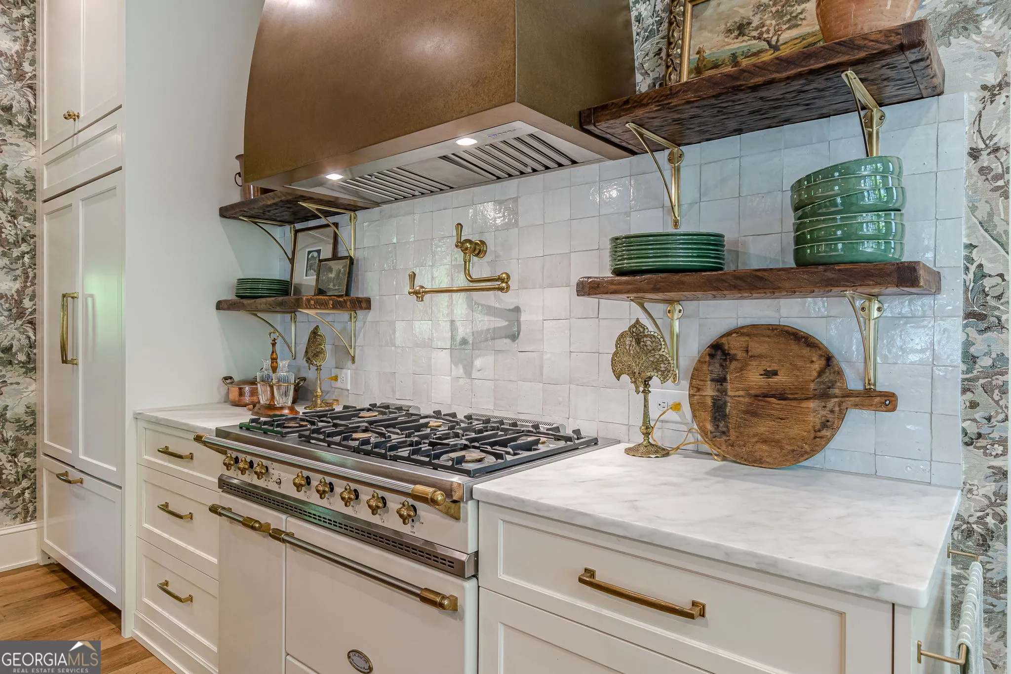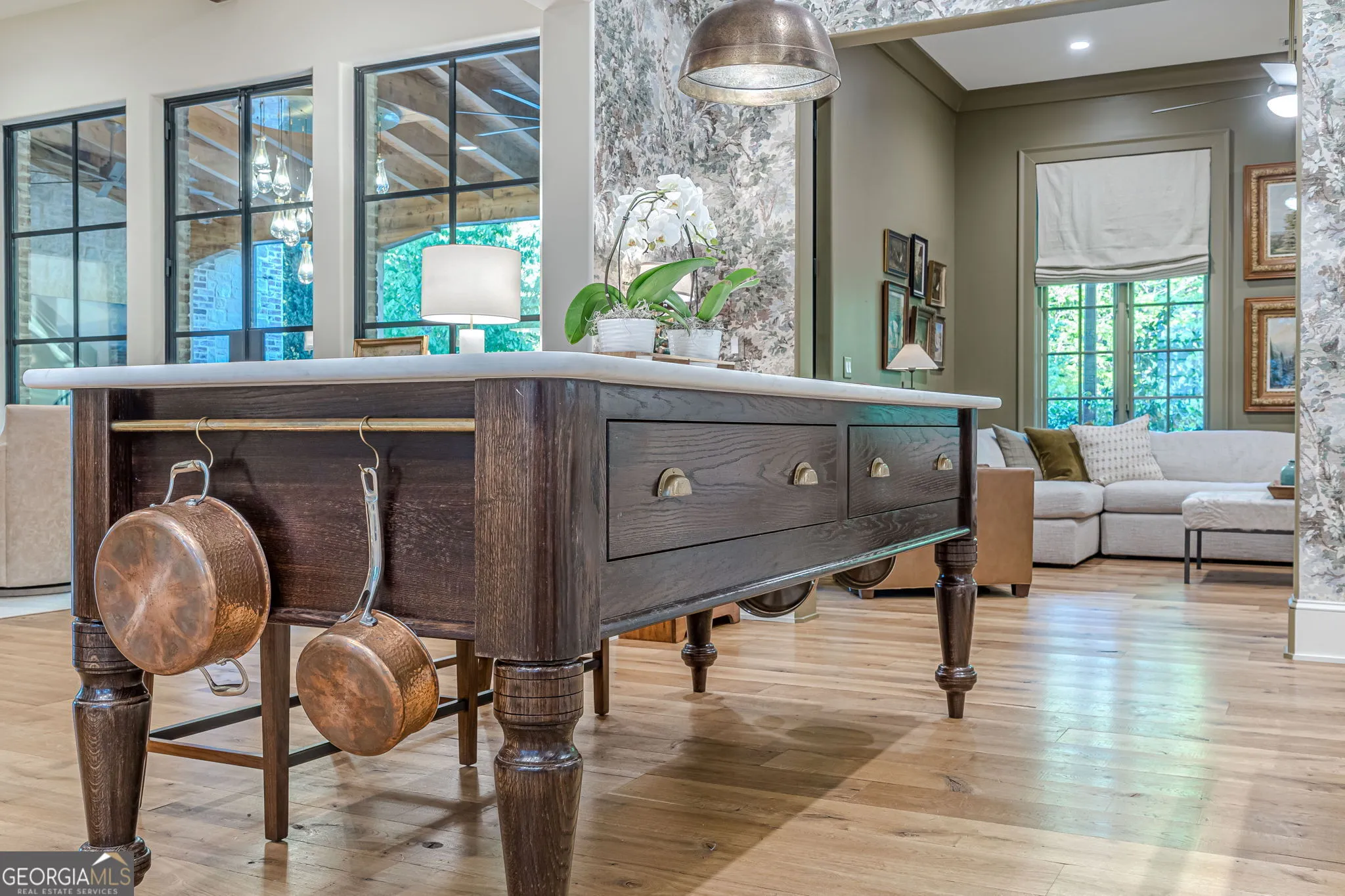 Tucked within the heart of the Town at Trilith overlooking The Great Lawn, this European-inspired villa is a masterclass in intentional design, craftsmanship, and quiet luxury. Conceived in collaboration with designer Buffy Ferguson, architect Lew Oliver, and builder 1023 Construction, the residence reflects a timeless, layered vision inspired by the villages of Southern France. Positioned on a coveted corner homesite with outdoor living on both sides of the home and a rooftop retreat, this custom home blends architectural romance with modern livability. From the moment you arrive, the limestone and reclaimed brick facade sets the tone-grounded, elegant, and enduring. An open-air entry hall invites exploration, while the home’s meandering layout creates a sense of discovery that feels both sophisticated and deeply personal. Inside, reclaimed antique French oak floors, marble countertops, designer wallpaper, steel windows and doors on the main level, a custom copper range hood, Lacanche range, Sub-Zero refrigerator, black walnut dry bar, and bespoke millwork speak to the exceptional quality woven throughout. The kitchen is as functional as it is beautiful, anchored by a custom deVOL prep table imported from England, floating glass pantry shelves, and artful finishes that create a collected, editorial feel. The primary suite offers its own serene retreat with marble, custom closets, electric shades, and richly layered details designed to feel both luxurious and restorative. Multiple gathering spaces, including the loggia, rooftop terrace, and a series of beautifully composed interiors, make the home ideal for both intimate living and elevated entertaining. Built with substance as well as style, the home also features geothermal systems, tankless water heaters, spray foam insulation, whole-house sprinkler and security systems, professional landscaping, slate roof detailing, and custom lighting throughout. The result is a home of rare character and quality-architecturally significant, beautifully executed, and unmistakably special. Beyond the interiors, the home continues to live beautifully outdoors. With inviting spaces on both sides of the residence and a rooftop terrace designed for lounging, gathering, and evening conversation, the outdoor experience feels like a natural extension of the home’s architecture-private, polished, and thoughtfully curated. And just beyond your doors, the Town at Trilith offers a lifestyle unlike anything else in the Atlanta area, where beautifully planned streetscapes, green spaces, dining, shopping, entertainment, and a true sense of community create an experience that is both vibrant and effortlessly walkable.