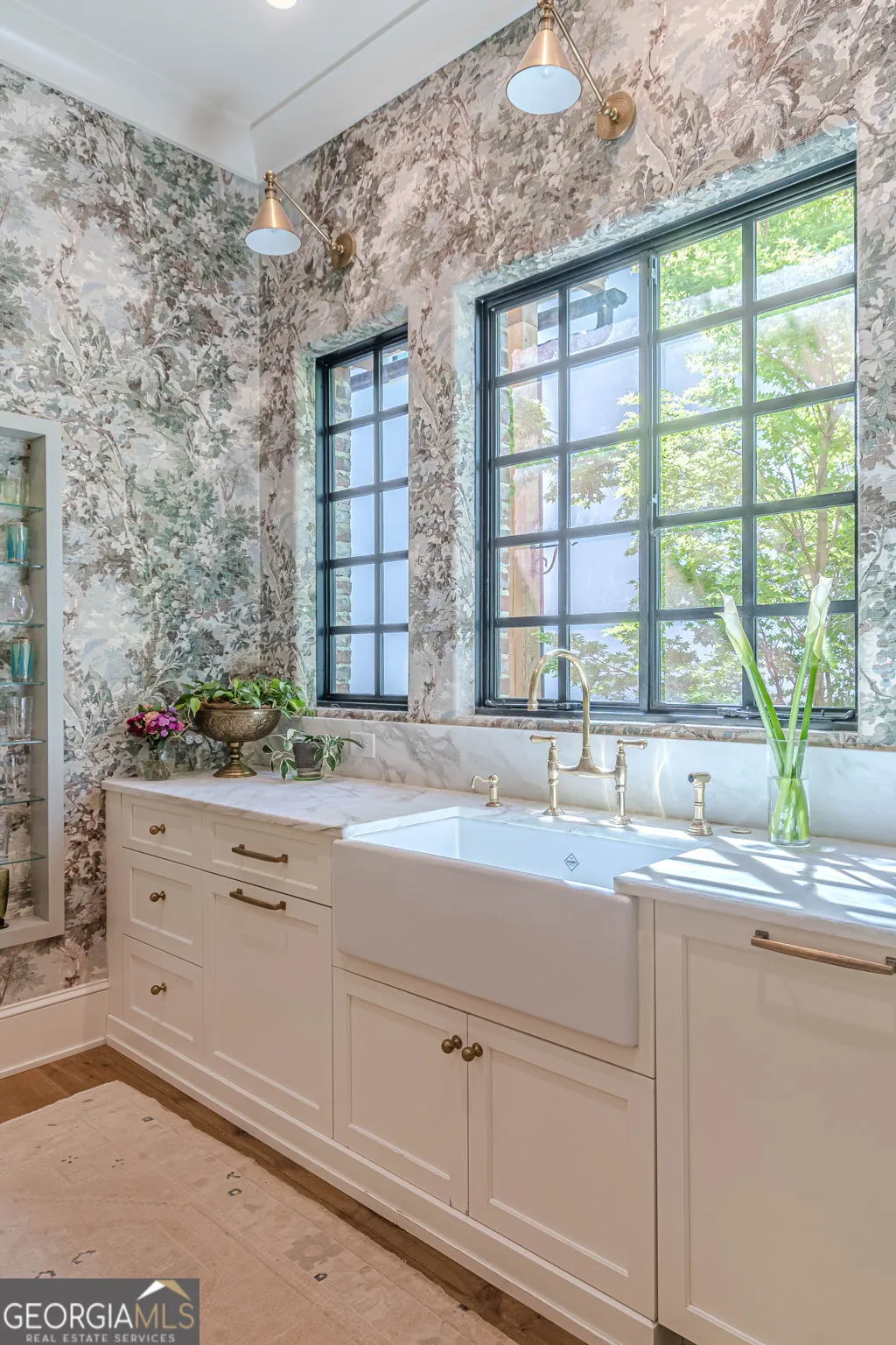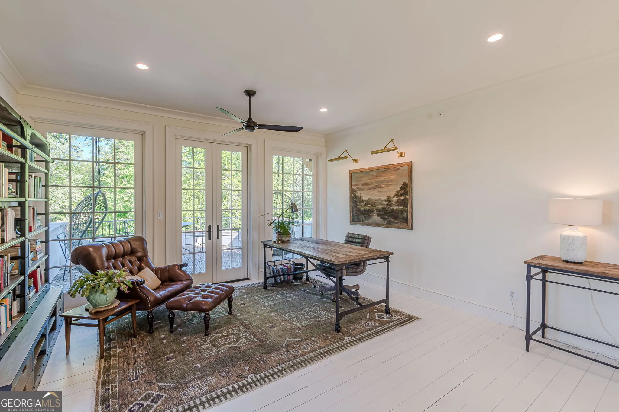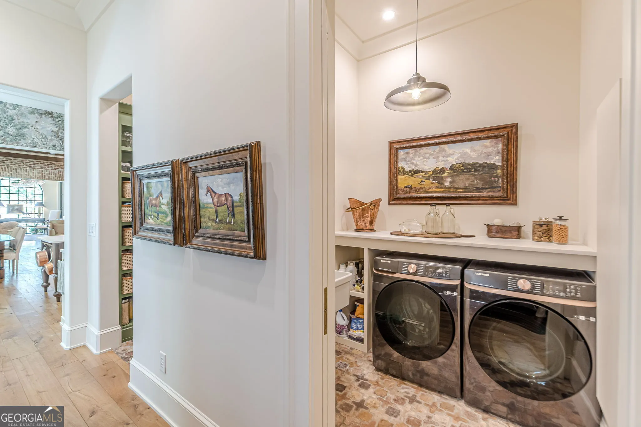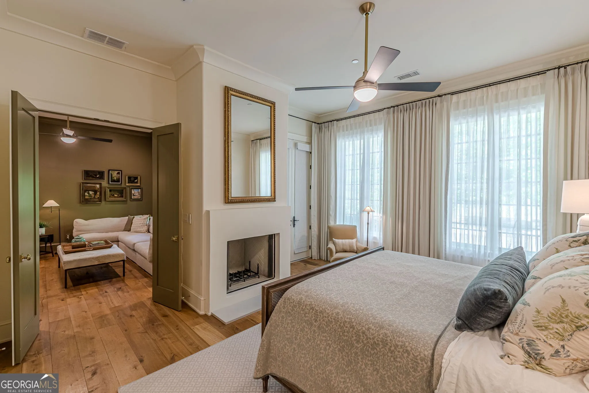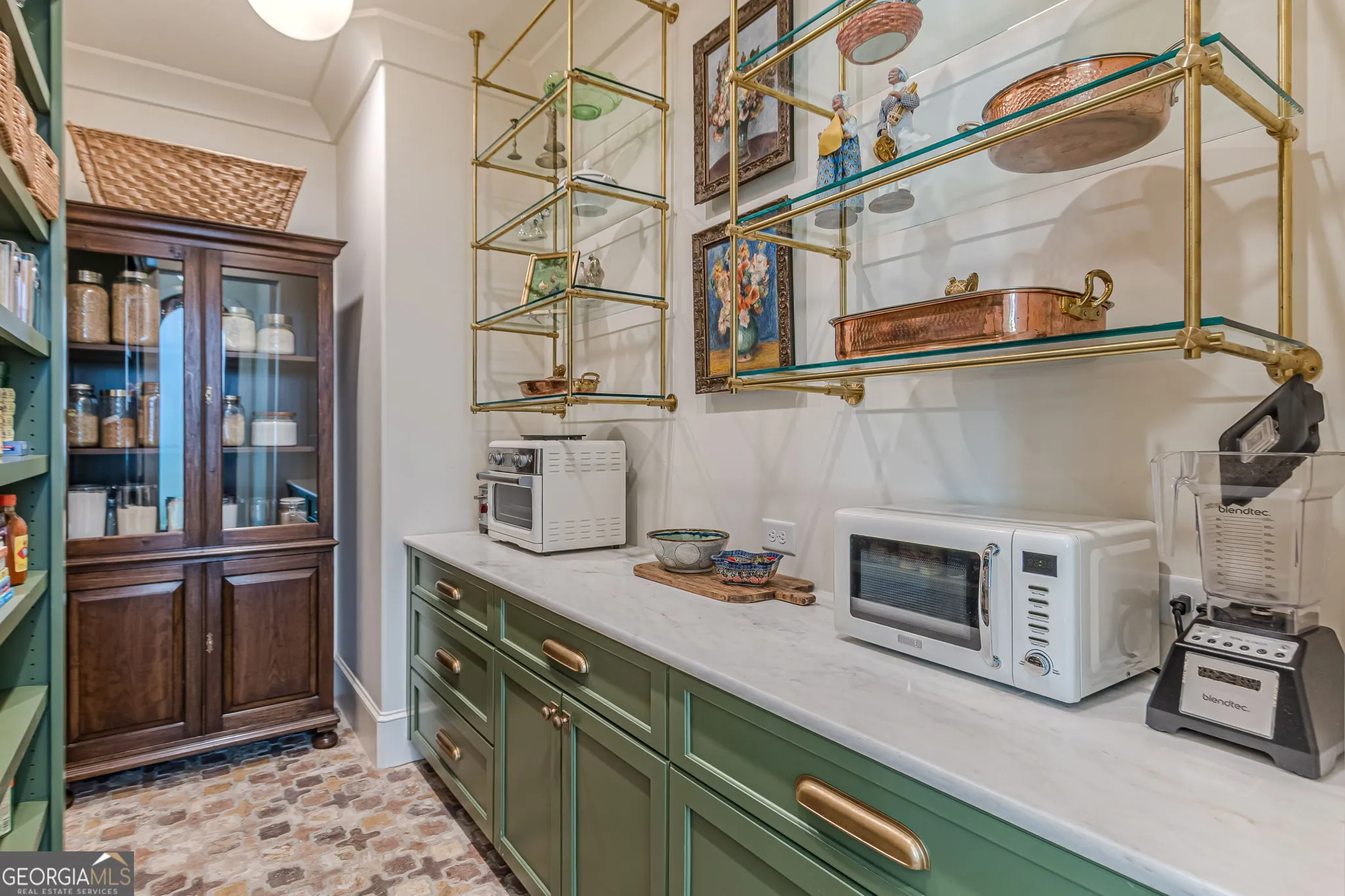 Tucked within the heart of the Town at Trilith overlooking The Great Lawn, this European-inspired villa is a masterclass in intentional design, craftsmanship, and quiet luxury. Conceived in collaboration with designer Buffy Ferguson, architect Lew Oliver, and builder 1023 Construction, the residence reflects a timeless, layered vision inspired by the villages of Southern France. Positioned on a coveted corner homesite with outdoor living on both sides of the home and a rooftop retreat, this custom home blends architectural romance with modern livability. From the moment you arrive, the limestone and reclaimed brick facade sets the tone-grounded, elegant, and enduring. An open-air entry hall invites exploration, while the home’s meandering layout creates a sense of discovery that feels both sophisticated and deeply personal. Inside, reclaimed antique French oak floors, marble countertops, designer wallpaper, steel windows and doors on the main level, a custom copper range hood, Lacanche range, Sub-Zero refrigerator, black walnut dry bar, and bespoke millwork speak to the exceptional quality woven throughout. The kitchen is as functional as it is beautiful, anchored by a custom deVOL prep table imported from England, floating glass pantry shelves, and artful finishes that create a collected, editorial feel. The primary suite offers its own serene retreat with marble, custom closets, electric shades, and richly layered details designed to feel both luxurious and restorative. Multiple gathering spaces, including the loggia, rooftop terrace, and a series of beautifully composed interiors, make the home ideal for both intimate living and elevated entertaining. Built with substance as well as style, the home also features geothermal systems, tankless water heaters, spray foam insulation, whole-house sprinkler and security systems, professional landscaping, slate roof detailing, and custom lighting throughout. The result is a home of rare character and quality-architecturally significant, beautifully executed, and unmistakably special. Beyond the interiors, the home continues to live beautifully outdoors. With inviting spaces on both sides of the residence and a rooftop terrace designed for lounging, gathering, and evening conversation, the outdoor experience feels like a natural extension of the home’s architecture-private, polished, and thoughtfully curated. And just beyond your doors, the Town at Trilith offers a lifestyle unlike anything else in the Atlanta area, where beautifully planned streetscapes, green spaces, dining, shopping, entertainment, and a true sense of community create an experience that is both vibrant and effortlessly walkable.