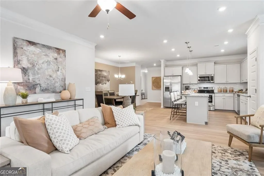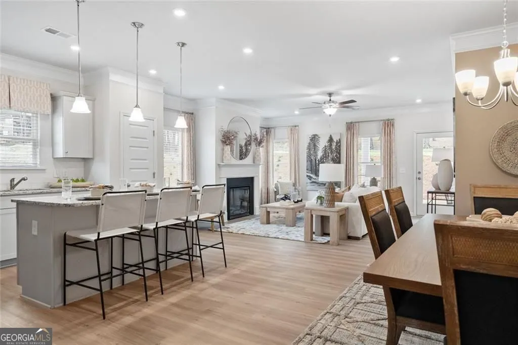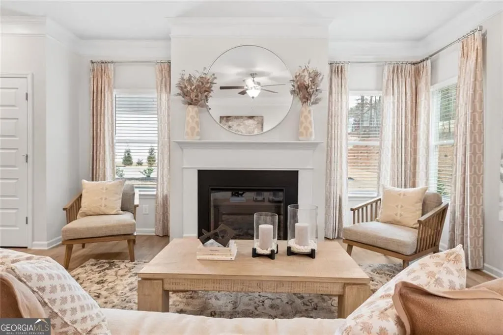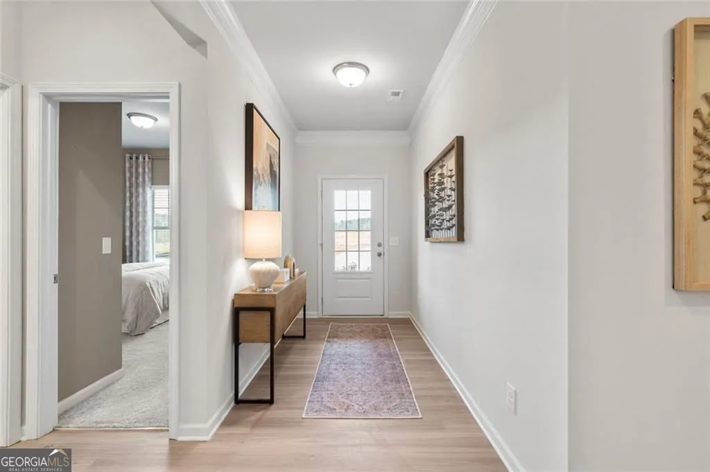 Move-In Ready June! The Pearson in Summerfield Place, a Smith Douglas Homes community conveniently located near the Carrollton Greenbelt. This thoughtfully designed ranch style home welcomes you with a cozy front porch and an open layout that maximizes every inch of space. The nine foot ceiling height and luxury vinyl plank flooring add to the spaciousness of the home, while the additional windows create an abundance of warmth with natural light. Enjoy a bright dining area that flows into a surprisingly spacious kitchen featuring a center island-perfect for entertaining. The chef-inspired kitchen features granite countertops, 42″ upper cabinets with crown molding for additional storage, The inviting family room with a sleek modern linear fireplace opens to the large private backyard and provides private access to the primary Suite, complete with a walk-in closet and luxurious bath. For added convenience, a mudroom and laundry area are located just off the garage entry, making organization effortless. Homeowners can enjoy entertaining on the rear back patio. Seller incentives with use of preferred lender. Photos representative of plan not of actual home. Nestled just 4 miles west of downtown Carrollton, Summerfield Place provides easy access to the University of West Georgia, Tanner Medical Center, and points north.