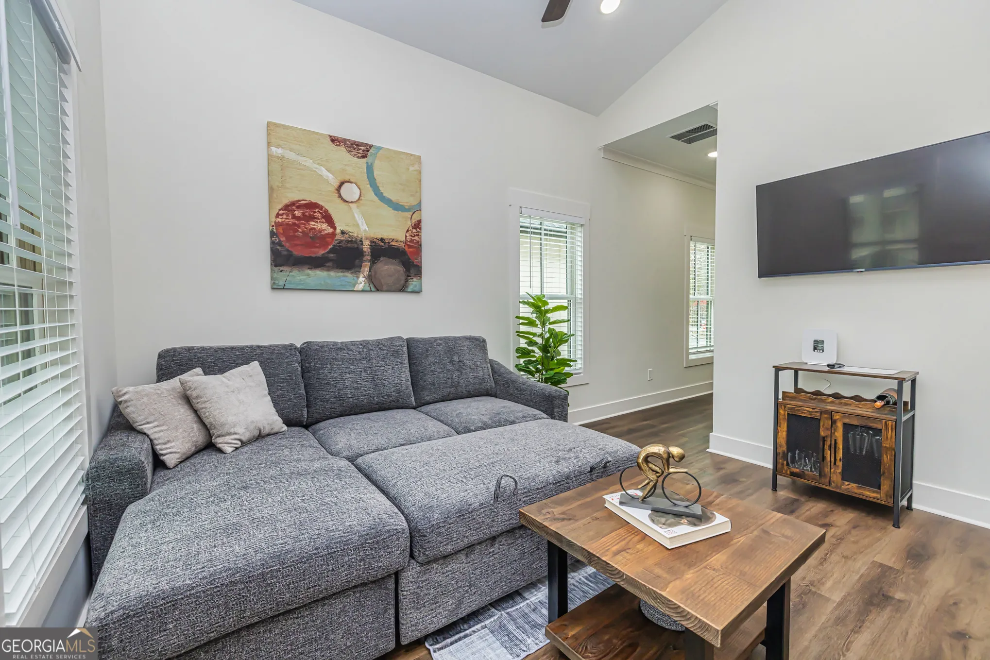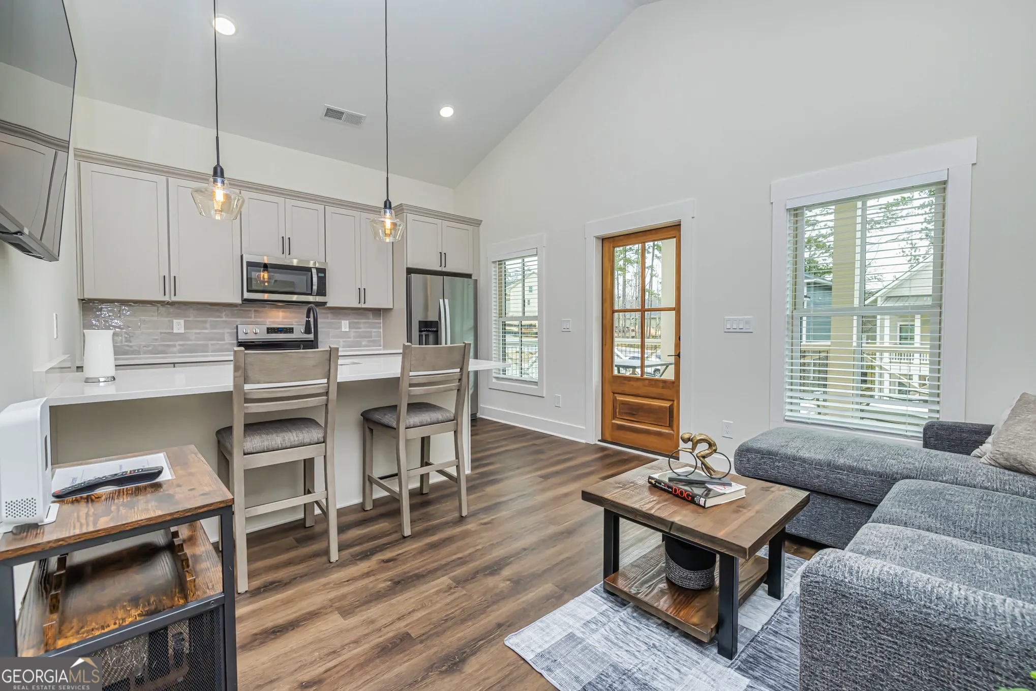 Furnished, ALL UTITITIES INCLUDED Right in the heart of Peachtree City. Welcome to “The Laurel Brooke Community,” Peachtree City’s newest and most unique mixed-use lifestyle concept. The apartment has One bedroom/One bath and is full of windows, hardwood floors, a quartz countertop, and a spacious kitchen for entertaining. The kitchen is fully stocked with dinnerware, cookware, and small appliances. The living room includes a new couch with a pull-out bed, perfect for guests or relaxing evenings at home. Enjoy the outdoors from the covered front porch or the large back deck, both offering plenty of space to unwind while being just steps away from Peachtree City’s 100+ miles of golf cart paths. Laurel Brooke features several pocket parks woven throughout the custom-home neighborhood, creating a welcoming and walkable environment. The apartment is upstairs. The first floor is a private commercial office that is not apart of this rental. It beats a hotel~ Available April 17th. Landlord’s Rental Requirements: Minimum 675 FICO score, Rental Application, 2 most recent Paystubs & Bankstatements, Photo ID. Income requirement: 2.5 X’s monthly rental rate, verifiable income. Rental application is through Rent Spree. *3-D tour and walk through video available.