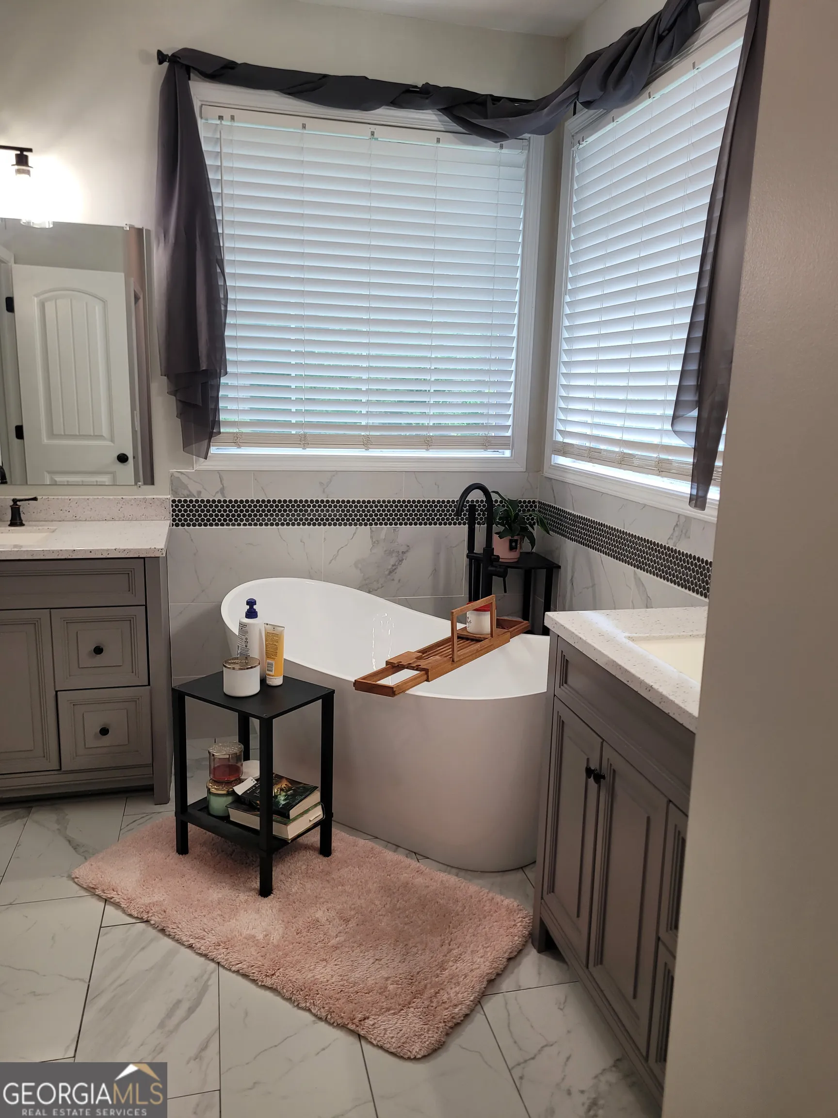 : Walk-In Closet(s), Double Vanity, Master On Main Level, Tile Bath, Pulldown Attic Stairs, Separate Shower, Soaking Tub, Two Story Foyer