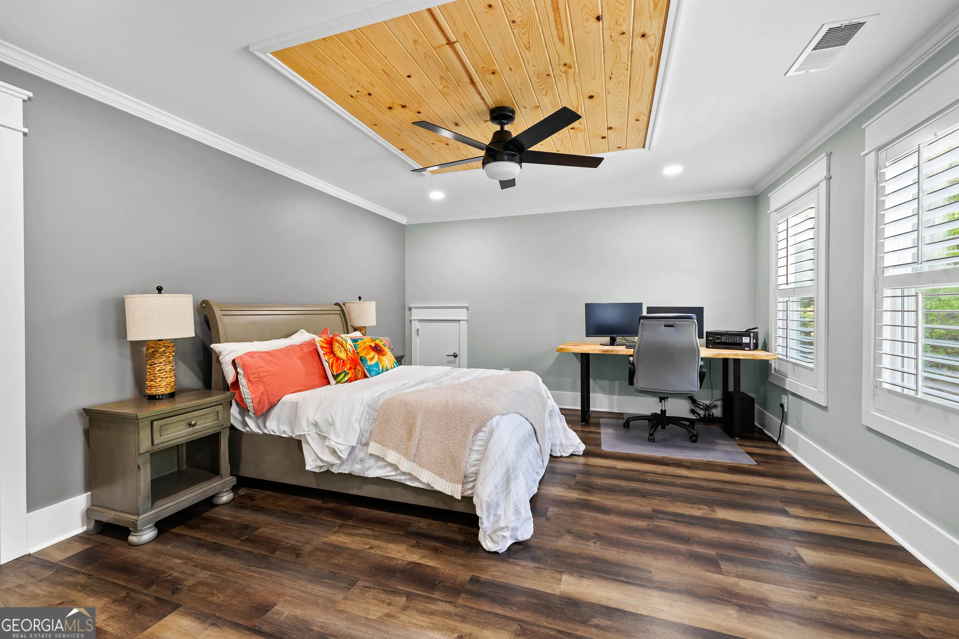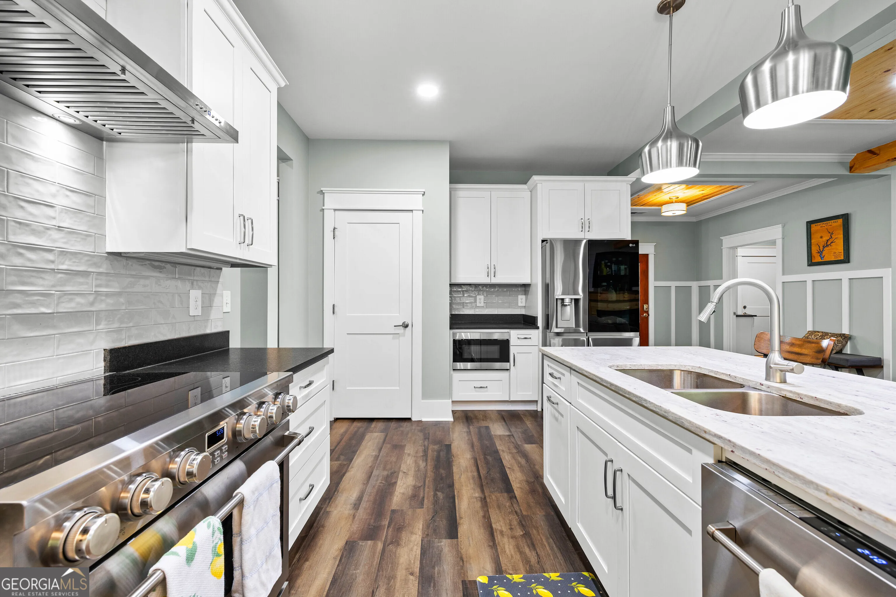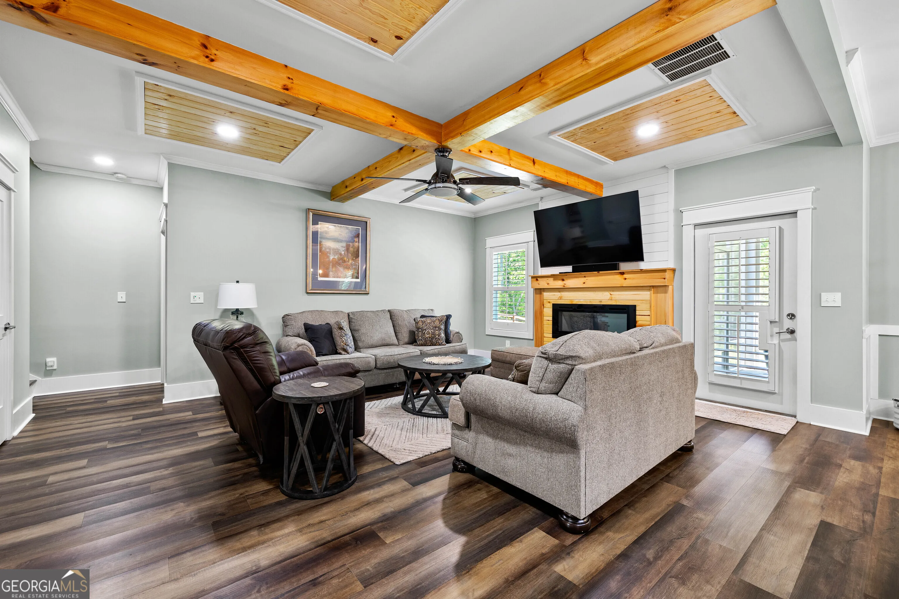 This beautifully maintained Craftsman-style home offers the best of lake living on 1.5 private acres with direct access to West Point Lake and a deeded covered boat slip. The home has been thoughtfully upgraded throughout with modern finishes, including fresh neutral interior paint, extensive crown molding, real wood plantation shutters, luxury vinyl plank and ceramic tile flooring, a fully screened porch with tongue-and-groove ceilings, an expanded patio with stone fire pit, and a beautiful epoxy-coated garage floor. Inside you’ll find an open, inviting floor plan with an electric fireplace, a kitchen featuring leathered granite countertops, stainless steel appliances, and a large island. The primary suite is conveniently located on the main level and includes a luxurious spa-like bath. Upstairs offers two additional bedrooms, a full bath, and a versatile loft space. The fully fenced backyard is perfect for entertaining, and the deeded boat slip (Sundance Slip #6) is just a short golf cart ride away. A true turnkey lake home with meaningful updates and one of the most desirable features on West Point Lake – a private deeded boat slip. Conveniently located approximately 53 miles from Hartsfield-Jackson Atlanta International Airport and just 7 miles from downtown LaGrange, this home offers the perfect balance of peaceful lake living and accessibility-ideal as a full-time residence or an elevated weekend retreat.
