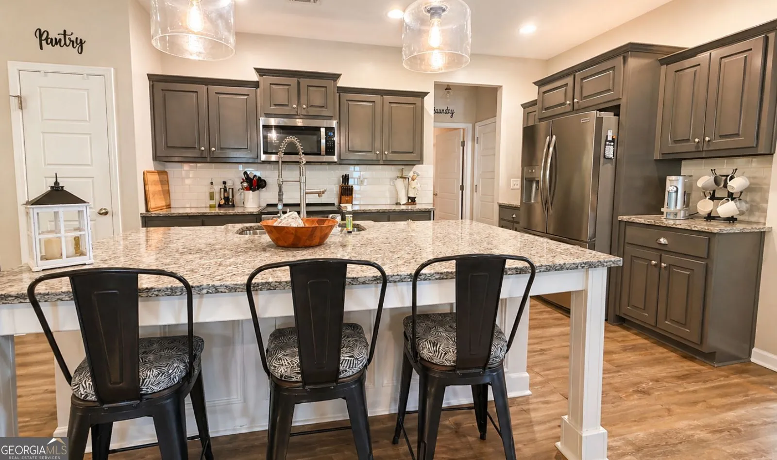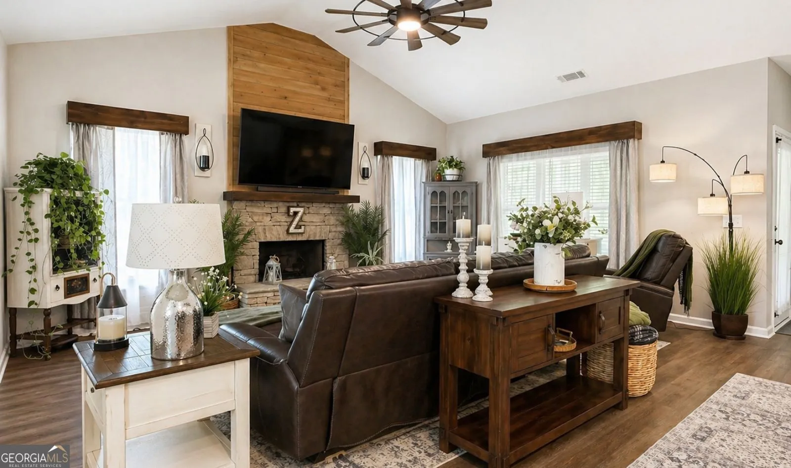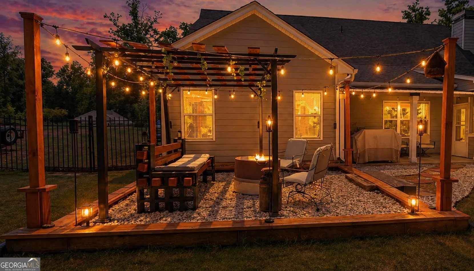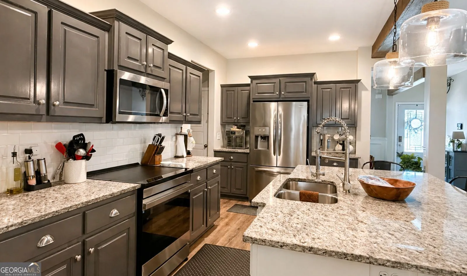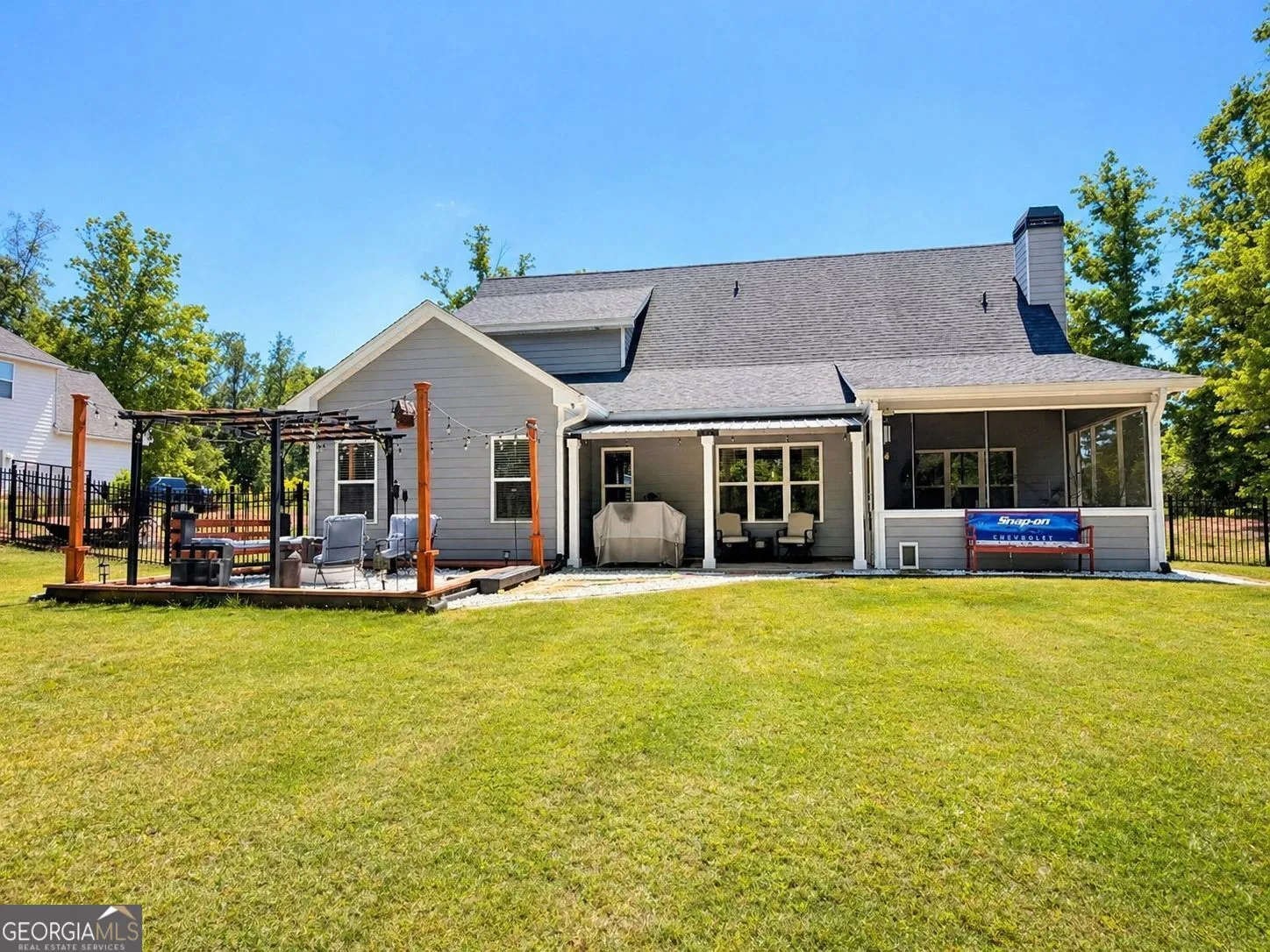Welcome home to an inviting exterior with classic traditional architecture and excellent curb appeal. This home was built in 2018 and is located in a highly desired subdivision of Turkey Creek Pointe. This home is positioned between Bremen and Carrollton. This is where modern upgrades meet timeless charm. Perfectly situated on a level lot, this 4-bedroom, 3-bath home with a spacious bonus room offers an exceptional blend of comfort, style, and functionality. The thoughtfully designed main level features an oversized primary suite with his-and-her closets, separate shower, and a soaking tub. An additional bedroom and full bath which is ideal for guests or flexible living. The open-concept living area highlighted by newly added white oak beams, abundant natural light, new wooden window cornices and brand-new luxury vinyl plank flooring (2025), all complemented by a soft, neutral color palette. The kitchen is both stylish and functional, boasting granite countertops throughout, a new convection induction stove with air fryer, ample cabinetry, and a bright breakfast nook that flows effortlessly into the main living space, perfect for entertaining or everyday living. A separate dining room adds elegance and versatility for special gatherings. Enjoy seamless indoor-outdoor living with a charming rocking chair front porch, a screened-in back porch featuring a Bluetooth-enabled ceiling fan, a covered patio, and a fire pit that is ideal for relaxing evenings and hosting friends. The iron-fenced backyard offers privacy and peace of mind, while the 10×12 storage building provides extra space for tools and hobbies. Additional highlights include all-new lighting, an updated laundry room, ample storage, and a recently pumped septic system (2025). Dreading putting up lights every year for your designated holiday? No worries here, owners installed permanent exterior lighting for any holiday. With easy access to I-20, shopping and dining, this home has it all. This move-in-ready home delivers space, upgrades, and lifestyle!! Here is an opportunity not to be missed.
